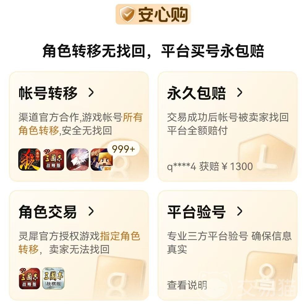 該平臺(tái)對(duì)于各種交易的過程當(dāng)中都會(huì)有著很妥善的處理方法,而且對(duì)于賬號(hào)轉(zhuǎn)移方面,交易貓會(huì)將賣家賬號(hào)面的游戲數(shù)據(jù)直接轉(zhuǎn)移到賣家的賬號(hào)上面,這樣就可以完全歸買家的所有,讓大家可以更好的去對(duì)于這些進(jìn)行擁有。降低了賬號(hào)被找回的風(fēng)險(xiǎn),也保障了交易的安全性。并且對(duì)于該平臺(tái)當(dāng)中,如果出現(xiàn)任何的不正當(dāng)?shù)男袨???梢栽诎踩行漠?dāng)中,對(duì)于該行為進(jìn)行一個(gè)舉報(bào)。所以可以保障買家的利益,也對(duì)該平臺(tái)的一個(gè)交易環(huán)境進(jìn)行了一個(gè)很好的規(guī)范性。