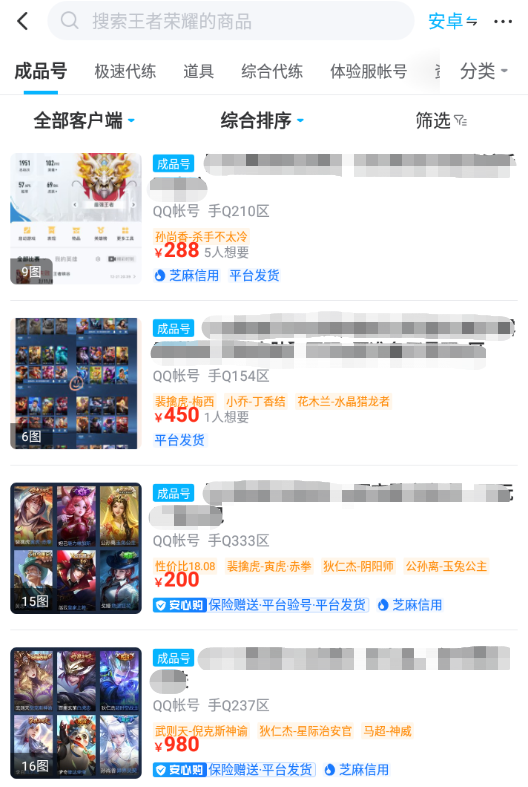 如果賣家都按上述做了,也想清楚了,那么就可以來到平臺內(nèi)了解一下王者榮耀的模塊了。在專區(qū)當中,大家都可以在挑選的時候進行對比,這樣才能保證自己能夠找出較為滿意的商品類型。如果您是想出售賬號的玩家,待您發(fā)布之后,您的商品也會出現(xiàn)在這模塊當中。里頭當中,你會發(fā)現(xiàn)還是有大部分的年輕用戶選擇出售自己的QQ號的。