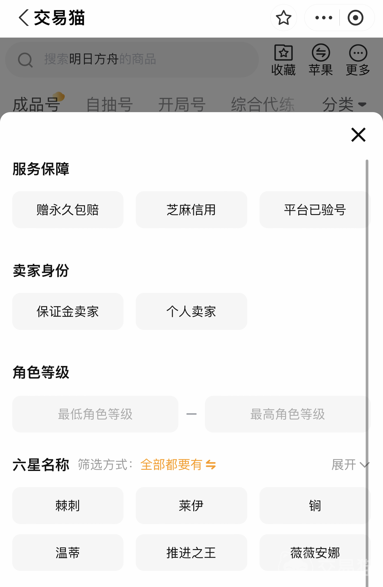 有的朋友希望獲得明日方舟里面的某個(gè)角色,這時(shí)可以直接勾選你需要的角色,例如某個(gè)六星角色。這樣在商品內(nèi)就會(huì)直接跳出擁有這個(gè)角色的商品,還能隨心查看其他信息。這樣既能滿足其他要求,又能讓你擁有喜愛(ài)的角色,不需要費(fèi)力地抽取。