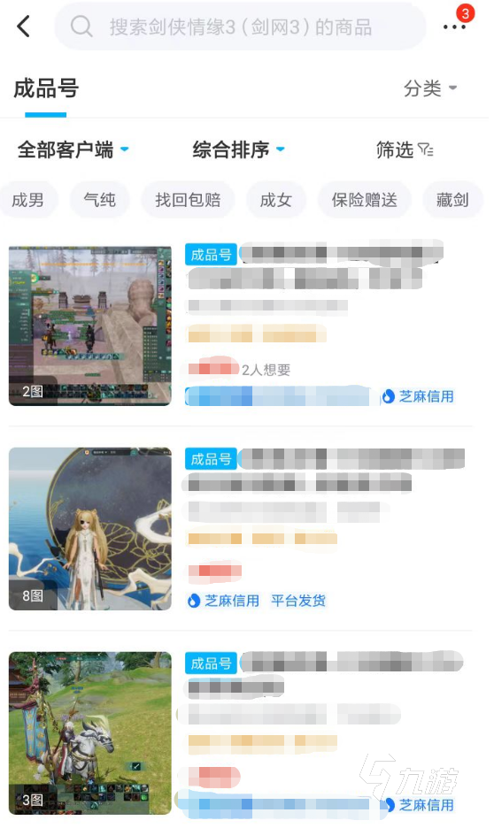 2、玩家們成功發(fā)布的商品,將會(huì)出現(xiàn)在游戲當(dāng)中的劍網(wǎng)三交易專區(qū)內(nèi)。在這里將看到大量的賬號(hào)交易內(nèi)容,每一個(gè)游戲商品都有著自己的特色和作用,玩家們也可以在線進(jìn)行挑選,通過(guò)對(duì)比的方法來(lái)找到最合適自己的商品。