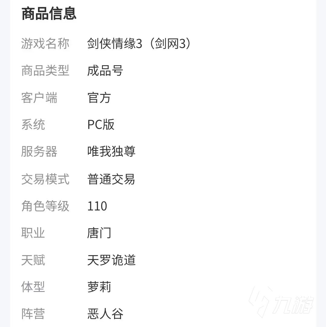 來源: 極光 作者: 江澄 2022年12月19日 18:50國內(nèi)3D武俠端游的代表公司西山居一直都是引領(lǐng)著國產(chǎn)MMORPG游戲的潮流,尤其是劍俠情緣網(wǎng)絡(luò)版3在09年到現(xiàn)在都是非常優(yōu)秀的一部武俠傳統(tǒng)作品。很多老玩家想回游于是都在問劍網(wǎng)3賬號交易平臺推薦哪個好,其實(shí)大家需要思考一下自己有退游的賬號,首先會掛在哪個平臺比較方便,當(dāng)然是交易貓,對這款平臺不了解的小伙伴就跟著小編一起來看看吧。