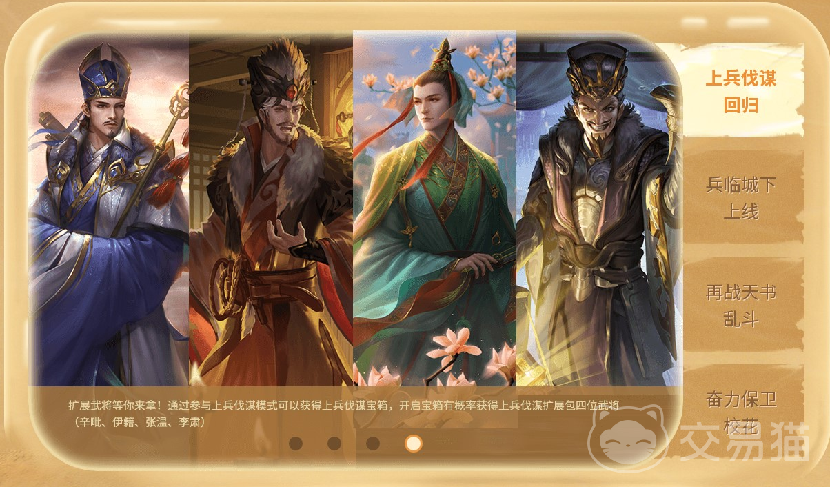 在這款游戲內(nèi)你能感覺到來自卡牌之間的博弈,任意一個(gè)武將都有自己的專屬技能,很多技能還都是有串聯(lián)性的,不同武將定位也都不同,要想知道自己的定位是怎樣的,前期就得確保有大量的武將好讓你去嘗試一下,可作為新賬號(hào)前期資金本來就很少,所以可以選擇一步到位直接去交易貓內(nèi)購買三國殺十周年賬號(hào)。