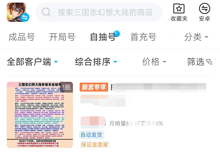 那么以上就是小編給大家提供的有關(guān)三國志幻想大陸自抽號(hào)值不值得買,在哪里買會(huì)比較好的回答,后續(xù)如果小伙伴們還有購買成品號(hào)或者充號(hào)的需求,也可以在交易貓內(nèi)找到相關(guān)的交易專區(qū)哦,希望大家都可以買到自己喜歡的賬號(hào)