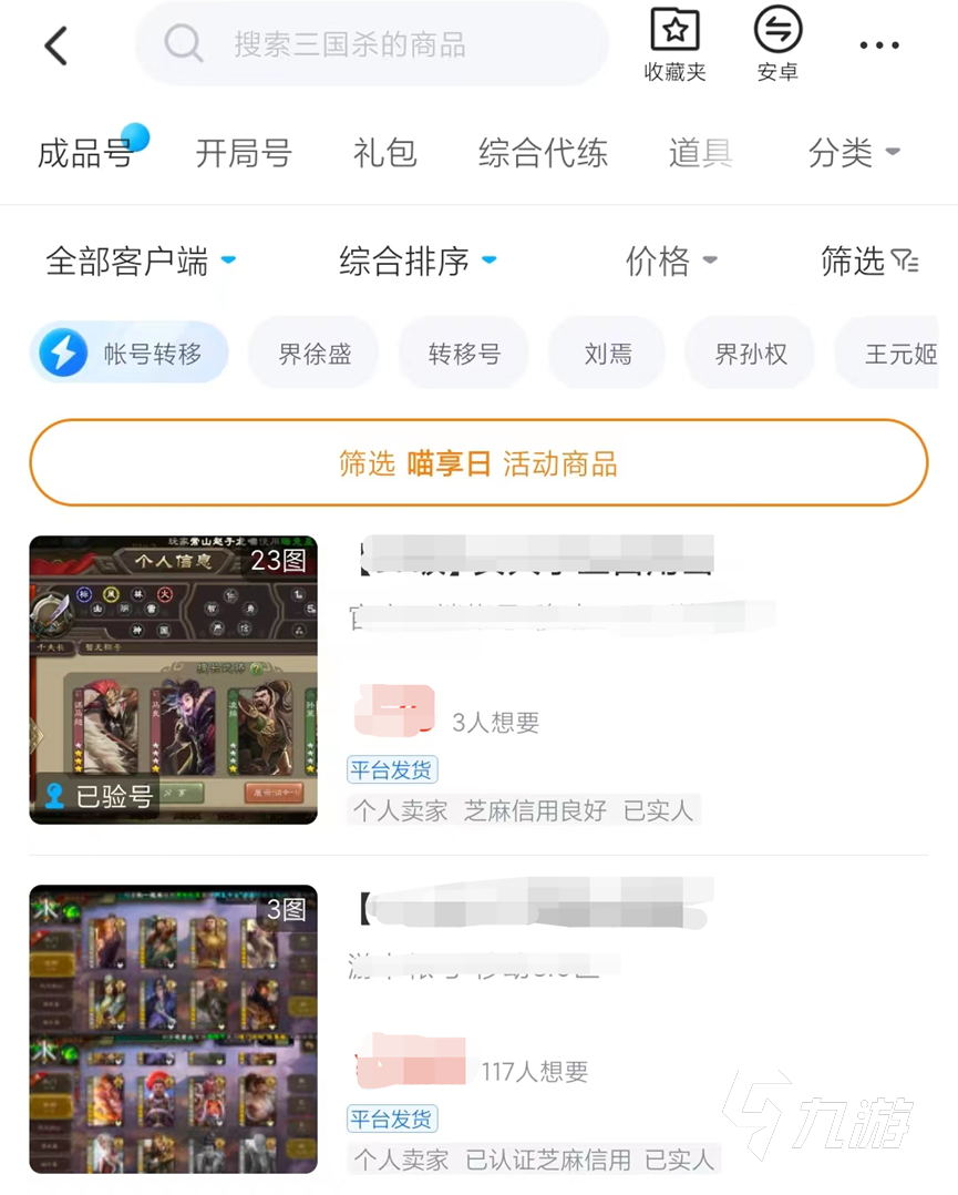 想要獲得優(yōu)秀的游戲體驗感肯定需要購買一個質量比較高的三國殺游戲賬號,賬號內的高級武將就算能全部擁有,但是最起碼也要有一兩個才能保證游戲賬號的質量和購買賬號之后游戲的質量,想要購買高品質的三國殺賬號可以通直接搜索找到相關的賬號哦。
