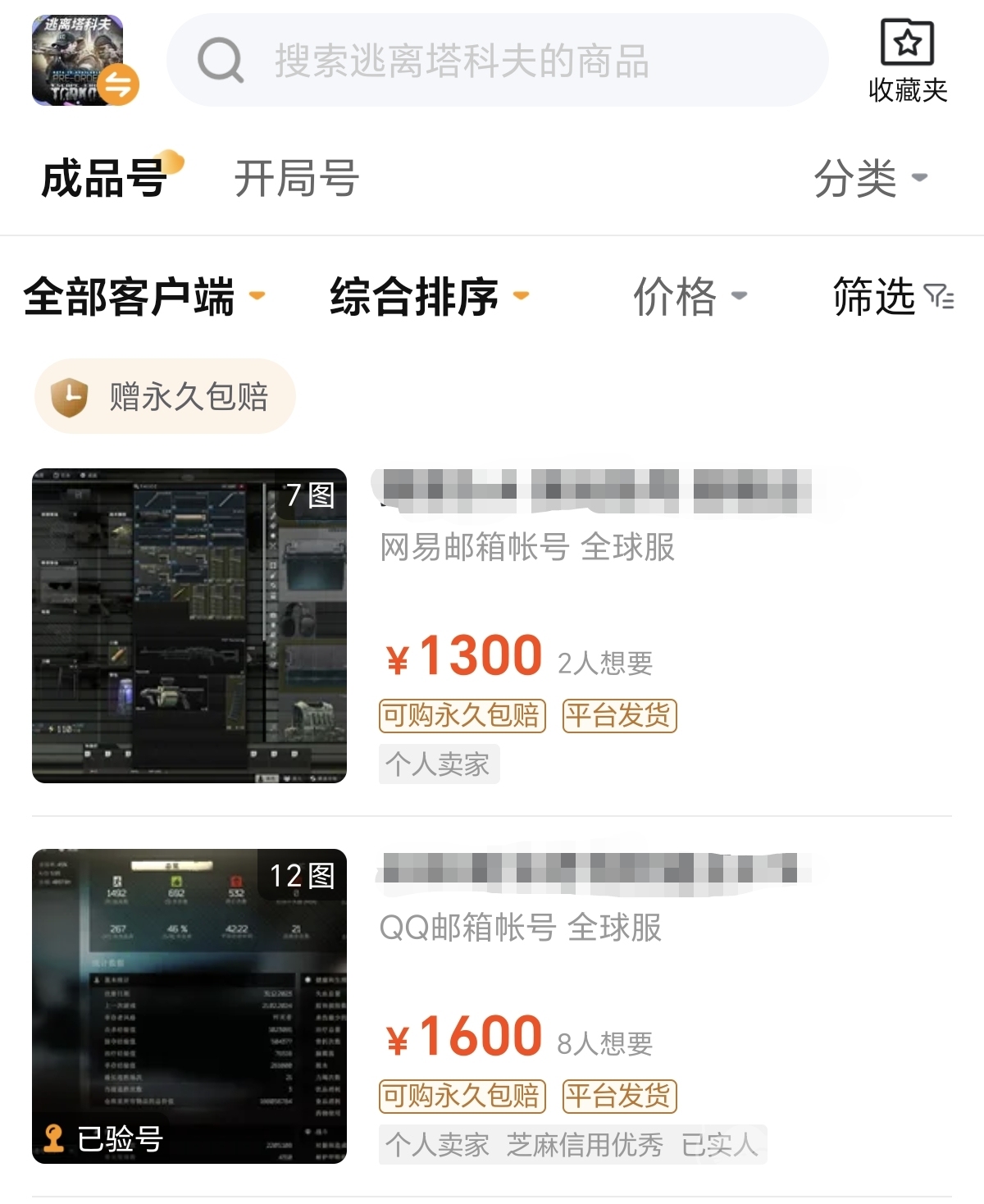 交易貓的游戲庫非常廣泛,涵蓋了手游和端游,國內(nèi)外的游戲種類應(yīng)有盡有。大部分游戲都設(shè)有專區(qū),只需搜索游戲名稱即可進(jìn)入,找到各種類型的賬號(hào),如開局號(hào)和成品號(hào)。舉例來說,對(duì)于《逃離塔科夫》,可以找到大量鈔票的開局號(hào),以及滿配件和子彈道具的成品號(hào)。