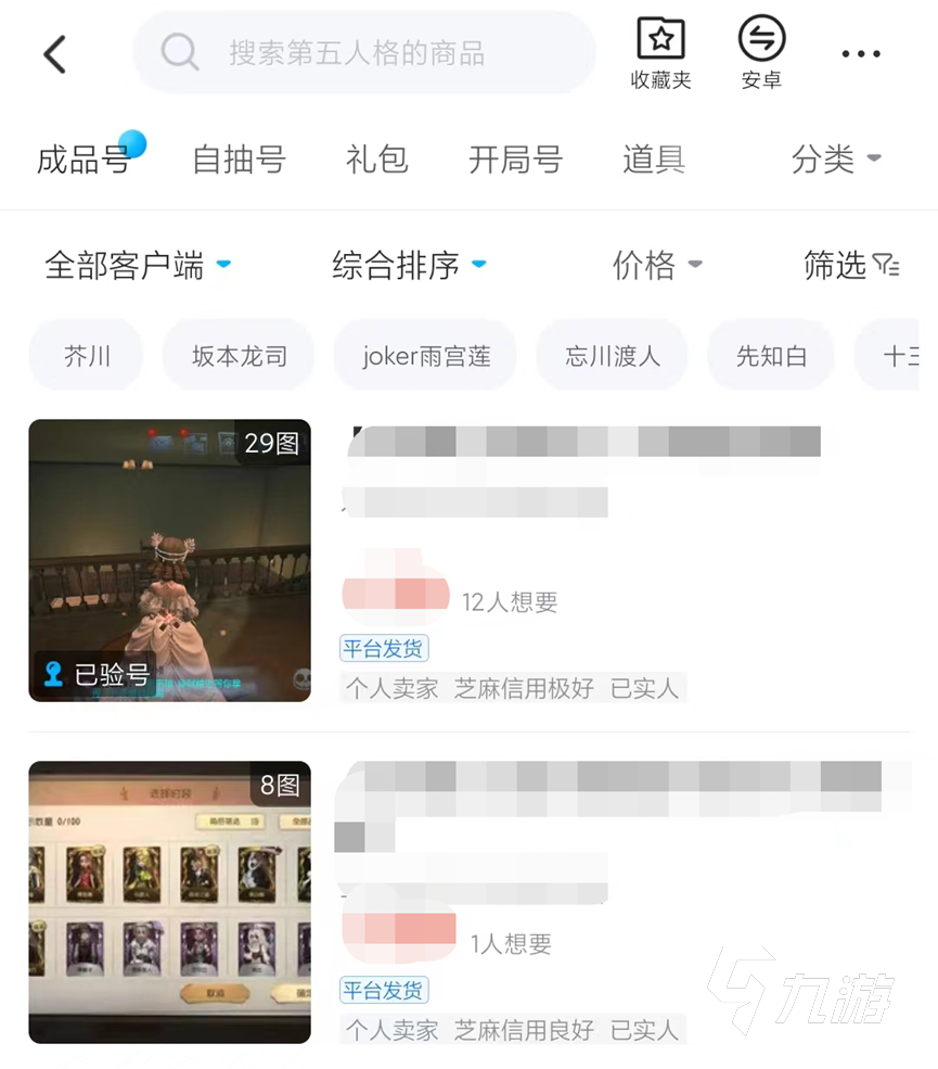 交易貓為第五人格這款熱門游戲設置了專門的游戲交易板塊,大家可以在這里找到很多不同種類的賬號,皮膚賬號也是應有盡有,像是貝拉夫人、問豪等等熱門皮膚都有相關(guān)的賬號,大家可以根據(jù)需求搜索賬號參考價格。