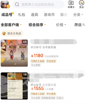 在這個平臺中玩家可以自由的進行賬號買賣,想要買賬號的話大家可以在平臺中搜索游戲名,之后就能進入到游戲的賬號專區(qū)了,在專區(qū)內大家可以看到該游戲所有類型的賬號,按種類劃分的話大致可以分為初始號、大神號、成品號這幾種,大家可以按自己的需求快速的選擇自己需要的賬號。