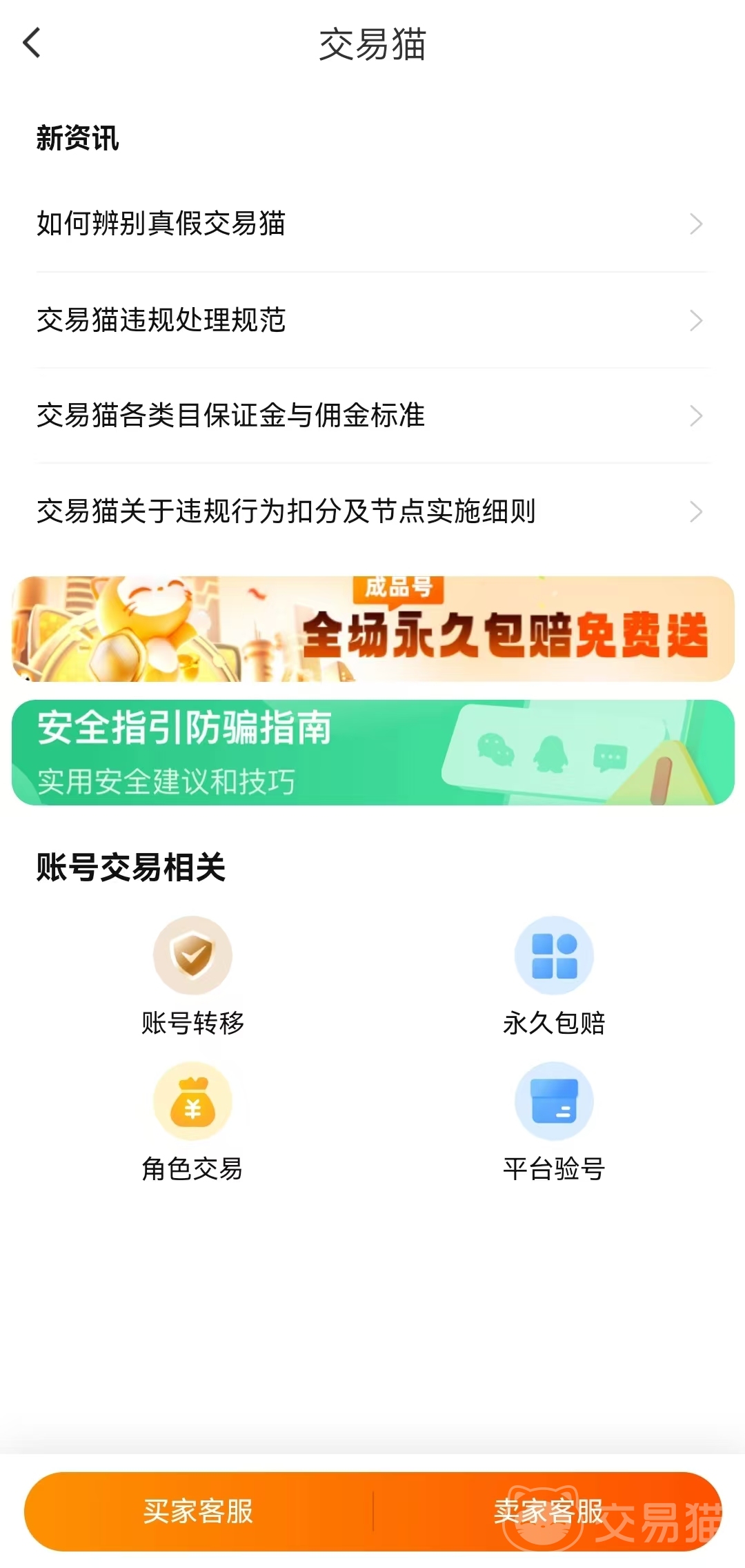 大家對(duì)交易貓的交易流程是否了解呢,如果大家有交易賬號(hào)的需求都可以下載這個(gè)平臺(tái)試一試,交易貓保證大家的交易安全,讓大家可以找到適合自己的游戲賬號(hào),可以根據(jù)自己的需求和偏好,享受最佳的交易體驗(yàn)。