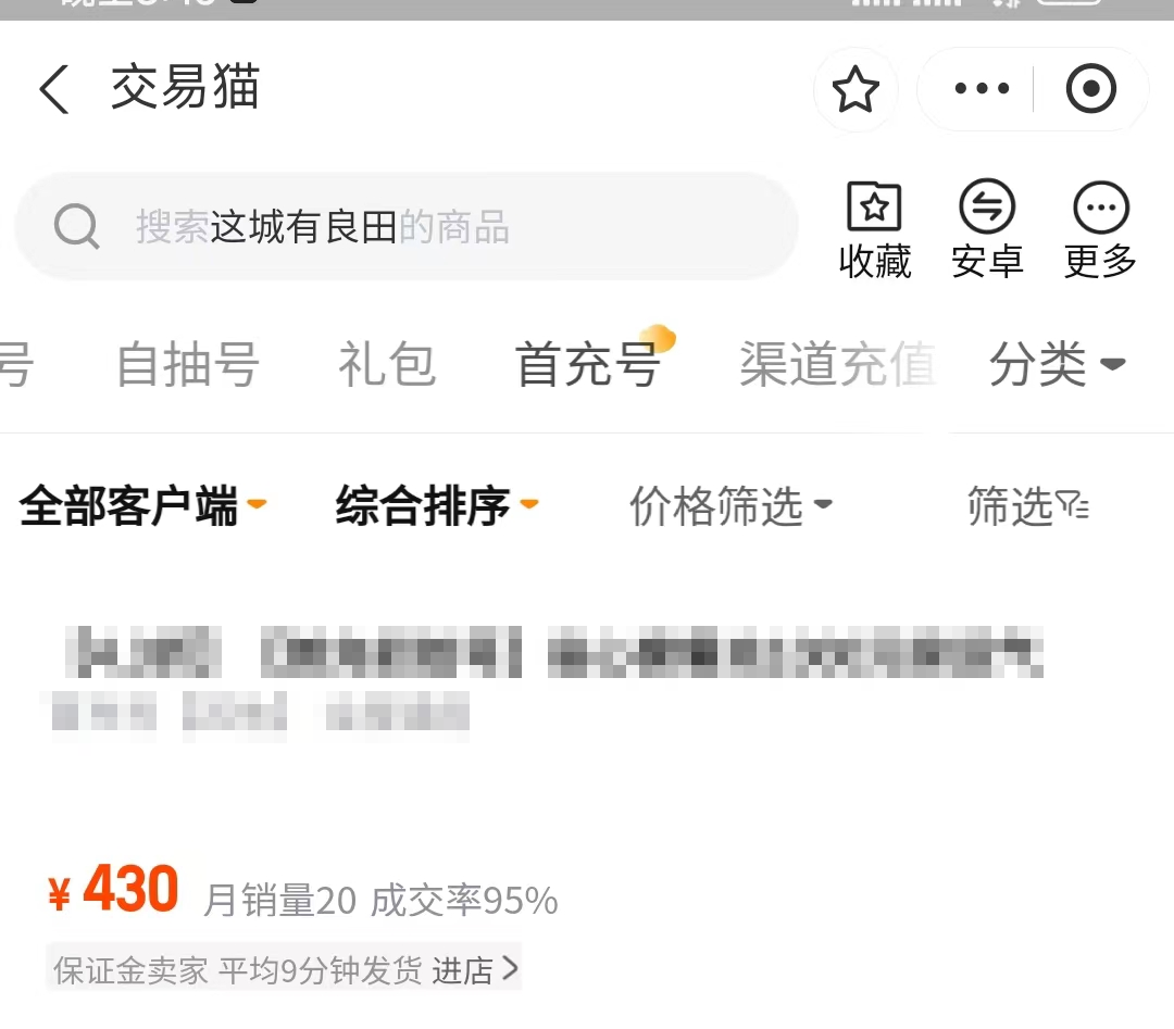 也有部分玩家想要開局好一點(diǎn)的賬號(hào),不太想要?jiǎng)e人已經(jīng)養(yǎng)成的賬號(hào),這樣會(huì)卻缺失自己的游玩體驗(yàn),就是想要一個(gè)良好的首充號(hào),這樣不論是建造農(nóng)田還是后期別的養(yǎng)成都會(huì)加快很多,這下交易貓的優(yōu)勢(shì)便能體現(xiàn)出來,可以通過分類功能找到首充號(hào),然后點(diǎn)擊就能找到一大批符合玩家需求的賬號(hào)哦!