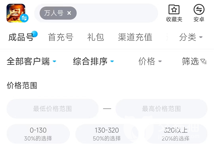 大家可以通過首頁搜索游戲名稱直接進入相關(guān)板塊,除了已有的成品號和初始號之外,還有首充號,自抽號道具禮包等等,使玩家能夠自由選擇。價格范圍也很容易對比,尤其是受到關(guān)注的萬人號,只需通過平臺搜索即可找到,并通過排序功能按價格由高到低展示。