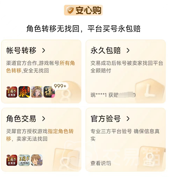 除了安心購這份保險之外,交易貓對買賣雙方一直也是堅持實名制,尤其是對上架商品的賣家要求都很嚴格,平臺都是有積分機制的,商家如果存在違規(guī)行為都會被記錄在內(nèi),所以說你能看到的優(yōu)先推薦賬號,多半都是來自誠信程度高的商家,這種賬號購買也會放心,包括還能看到商家的芝麻信用分數(shù)。