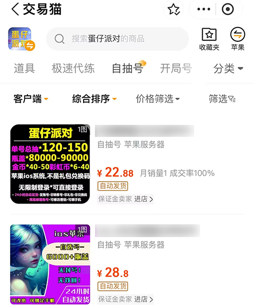成品號、自抽號、開局號價(jià)格差異大。不同于蛋仔成品號動輒幾百幾千的報(bào)價(jià),蛋仔開局號只要幾十元,雖然沒有豪華的內(nèi)容,但是自帶幾百抽、瓶蓋和彩虹幣等,還是性價(jià)比拉滿。