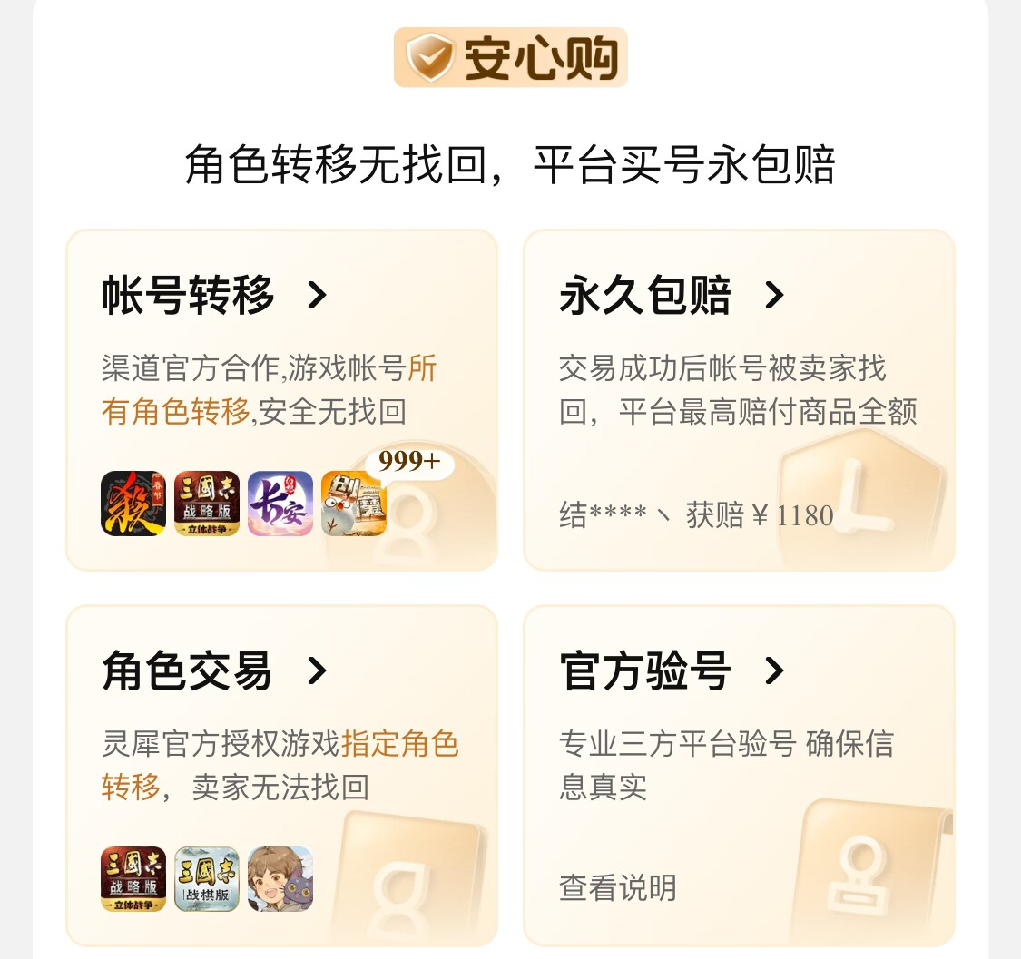 賬號服務(wù)保障多售價(jià)高。永久包賠是交易貓升級服務(wù),它由保險(xiǎn)公司提供理賠,保障賠付比例高,最高支持全額賠償。賣家賣號有誠意,買家更放心,自然愿意付出更多的預(yù)算。