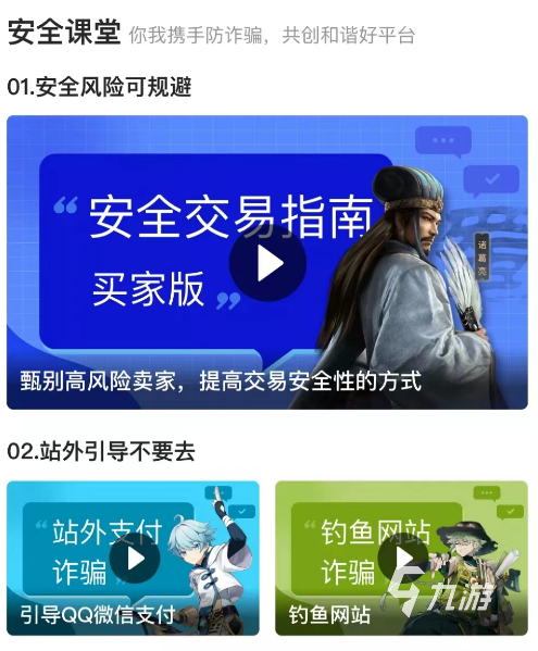 就算小編再如何強(qiáng)調(diào)安全問(wèn)題,還是有些小白同學(xué)比較一頭霧水,這也沒(méi)關(guān)系,交易貓為了提高大家的防詐意識(shí),專門在主頁(yè)設(shè)定“安全課堂”,在這里不僅能學(xué)習(xí)到特別多相關(guān)的電信防詐知識(shí),避免新手首次交易落入不良商家的圈套,只要是能嚴(yán)格按照平臺(tái)的要求去進(jìn)行交易,基本不會(huì)出現(xiàn)大問(wèn)題。