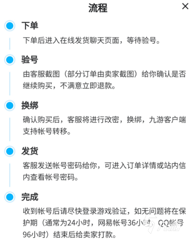 由于部落沖突主要是用QQ或者是微信登陸,這就涉及到賬號(hào)綁定的問題了,平臺(tái)對于這些賬號(hào)交易有專屬客服可以提供幫助,在下單后由客服介入幫忙換綁改密,避免賣家臨時(shí)變卦導(dǎo)致賬號(hào)出現(xiàn)問題,有效的保障了買家權(quán)益,讓買家可以放心的進(jìn)行賬號(hào)的交易。