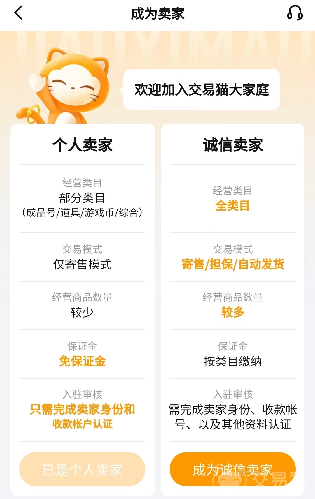 在交易貓上像這款游戲這樣的游戲賬號(hào)交易一般都是保證金賣家在售賣。交易貓平臺(tái)上的賣家一般分為了兩類,一類是個(gè)人賣家一般是售賣成品號(hào)居多,還有一類就是保證金賣家,這類賣家能夠售賣的賬號(hào)內(nèi)容就會(huì)多很多,其中像游戲賬號(hào)和初始號(hào)這類就是保證金賣家售賣的范圍。保證金賣家相對(duì)來說也會(huì)更加安全和可靠一些。