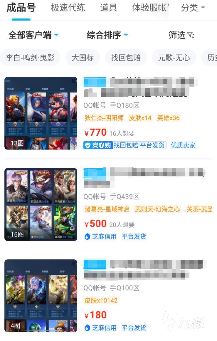 對(duì)于一般的平臺(tái),或許能看到的永遠(yuǎn)只有那幾個(gè)熱門(mén)游戲,而在交易貓中,很多冷門(mén)、小眾的游戲也很常見(jiàn),經(jīng)常有小伙伴表示,在交易貓買(mǎi)到了自己未曾想過(guò)的游戲賬號(hào),看起來(lái)大家的購(gòu)號(hào)體驗(yàn)都還不錯(cuò)。當(dāng)然更不用提王者這樣的熱門(mén)大手游,想要找到一個(gè)合適的賬號(hào)可以說(shuō)輕而易舉,同時(shí)也可以參考其他玩家發(fā)布的全英雄賬號(hào),對(duì)自己的賬號(hào)進(jìn)行估價(jià)。