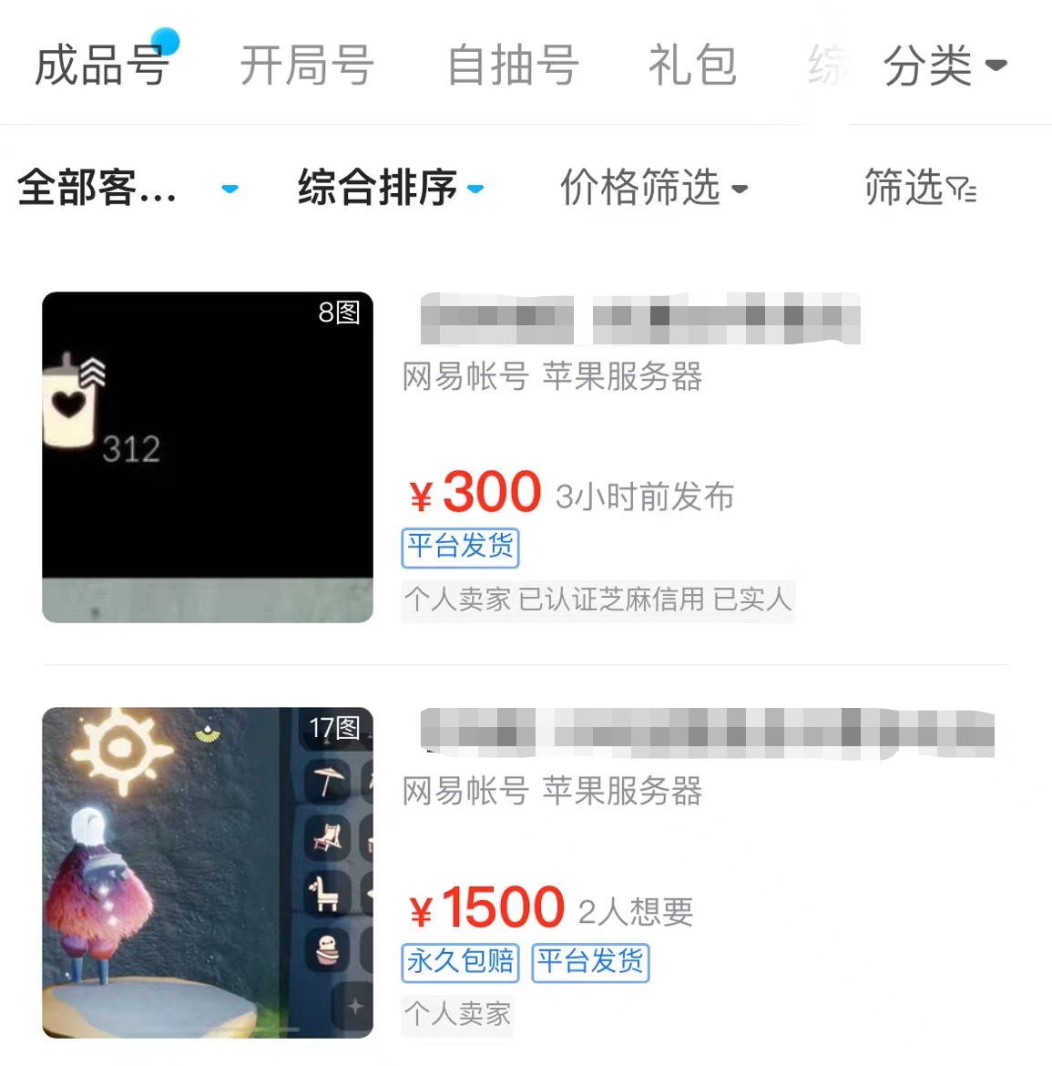 目前交易貓上的白鳥光遇號價格在500元左右,除了白鳥賬號以外,里面還有很多其他類型的光遇賬號,比如優(yōu)秀的開局號,這些開局號自帶豐富資源,讓大家開局更加順利。而喜歡成品賬號的小伙伴選擇性就更多了,想要什么樣的等級都有,甚至可以要求賬號解鎖了哪些地圖,是不是全畢業(yè)了。在詳細搜索之前可以先用條件篩查來進一步縮小范圍,因為平臺已經(jīng)幫大家把各種條件都分類好了,一勾就能找到。