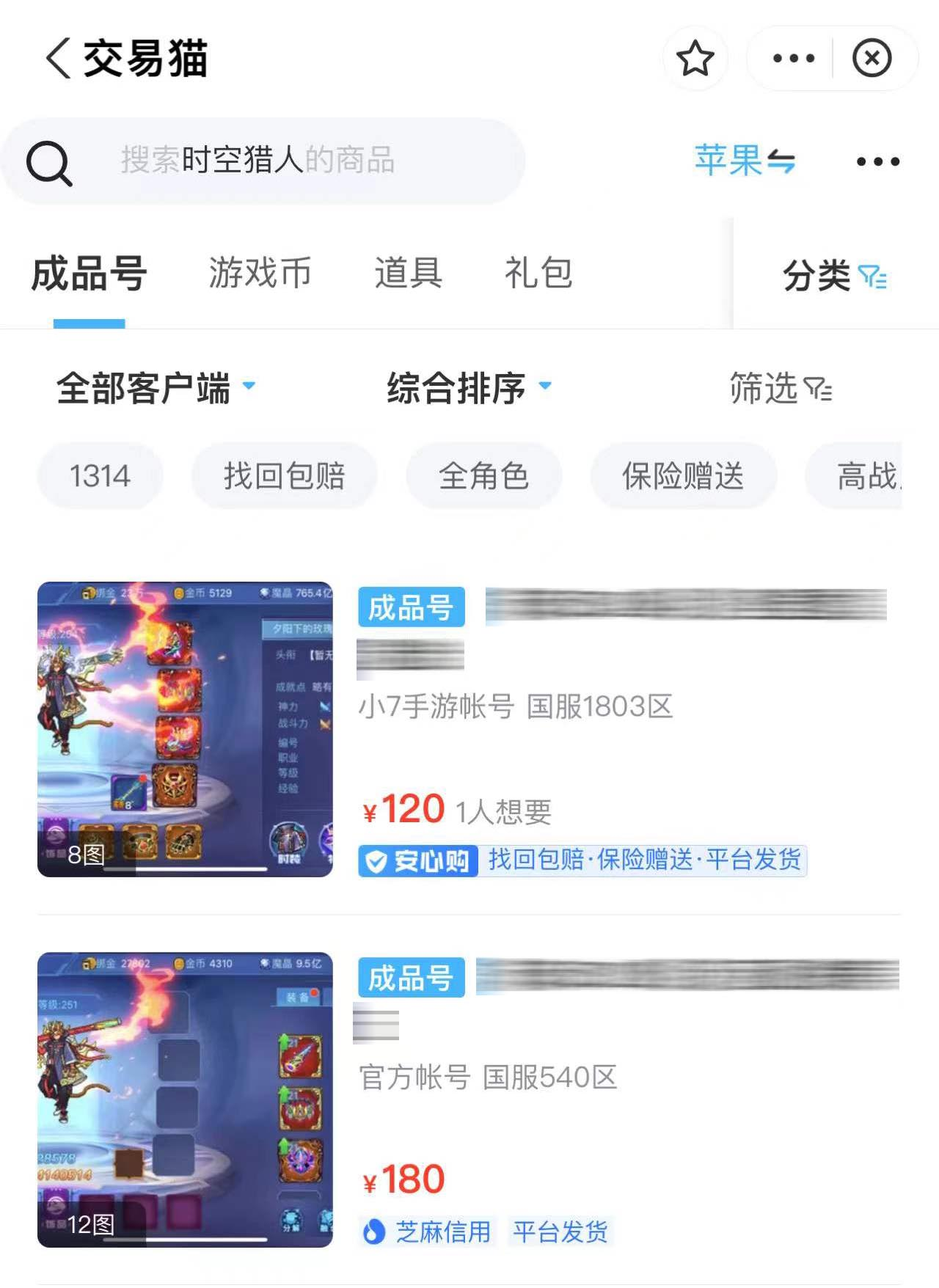 不過(guò)時(shí)空獵人成品號(hào)價(jià)值還是挺高的,購(gòu)買(mǎi)的話(huà)就得去靠譜的平臺(tái)去購(gòu)買(mǎi)了。這里更加推薦各位去使用交易貓平臺(tái),里面存在著大量的時(shí)空獵人成品號(hào),可以供大家細(xì)細(xì)挑選,除此之外,賣(mài)家人數(shù)非常多??梢宰屇爿p松挑選到自己喜歡的角色以及資源,快速地匹配自己的需求,從而獲得更好的游戲體驗(yàn)。