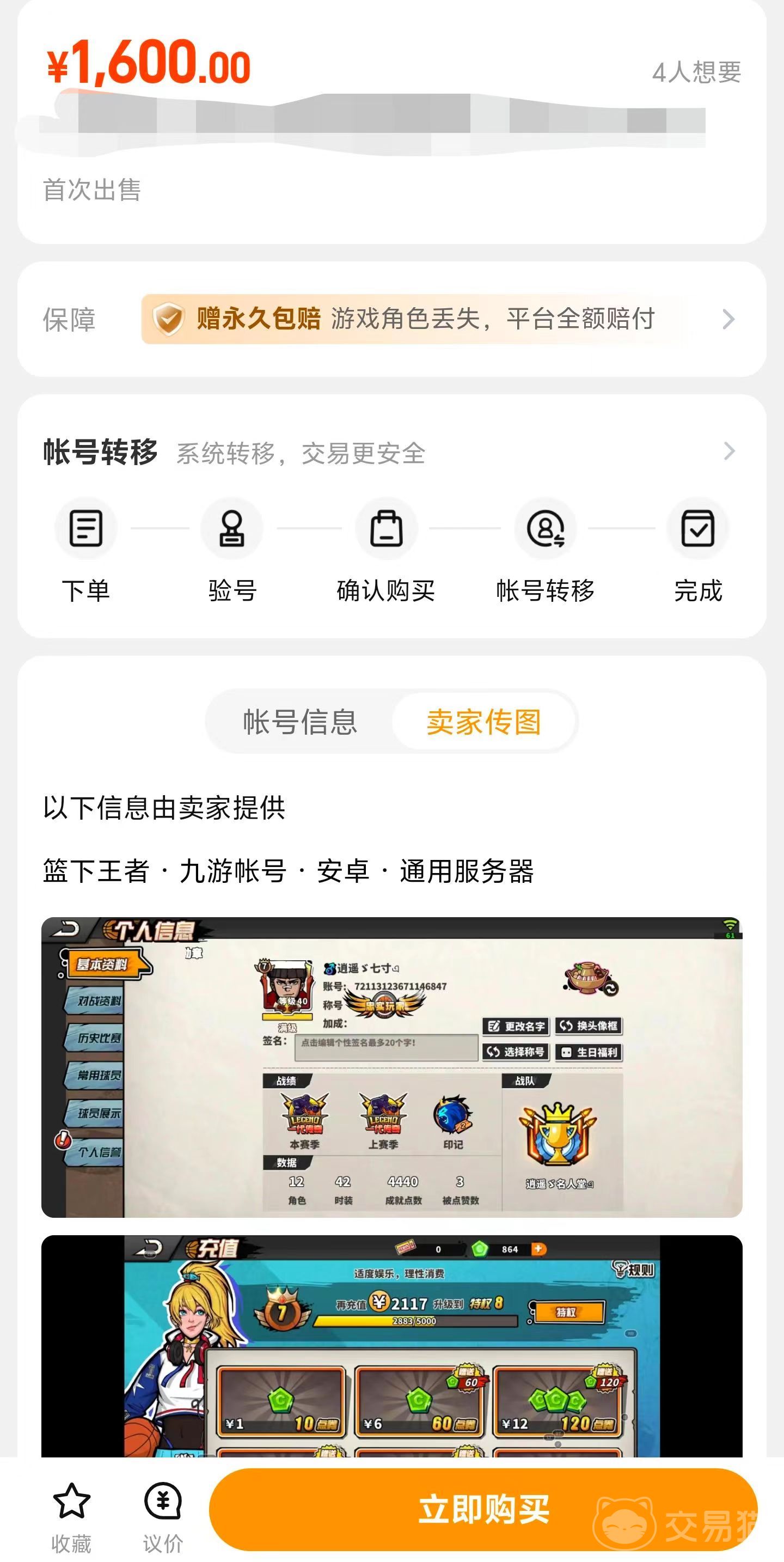 很多游戲賬號的左下角都會有金色的提示,來強調(diào)我們購買這個賬號交易貓所提供的安心購服務,贈送的永久包賠,就是說如果后期出現(xiàn)游戲角色丟失,交易貓這個平臺會全額賠付玩家購買賬號的損失,保護我們玩家的權(quán)益。