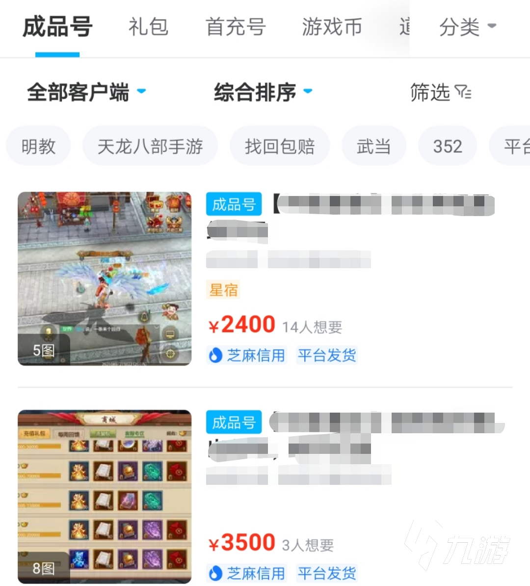 想要買天龍八部賬號一定要選擇大的平臺,大平臺賬號多,可選性更強。而小平臺的賬號又少,質(zhì)量又不好。交易貓就是一個大型的游戲交易平臺,在里面有非常多的天龍八部賬號,不管大家需要的是6級號還是滿裝號都可以滿足。這些賬號涵蓋的區(qū)服廣泛,輕松就能找到自己服務(wù)器里在售賣的賬號了。
