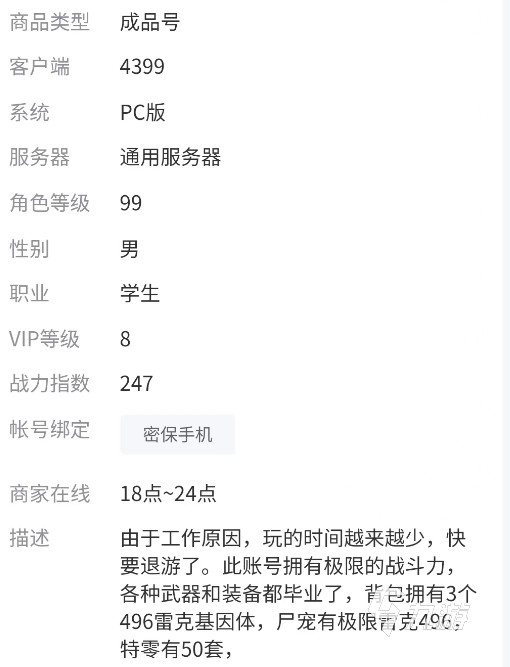 交易貓對(duì)商品介紹的要求很高,賣(mài)家得根據(jù)模板來(lái)介紹賬號(hào),所以大家在看的時(shí)候就是一目了然,能讓你知道游戲的服務(wù)器和具體內(nèi)容,感興趣的話再去和商家深入了解,一些細(xì)心的商家描述都很仔細(xì),這樣也節(jié)省了雙方的時(shí)間,如果滿(mǎn)意的話再去問(wèn),不滿(mǎn)意的話再去看其他賬號(hào)。