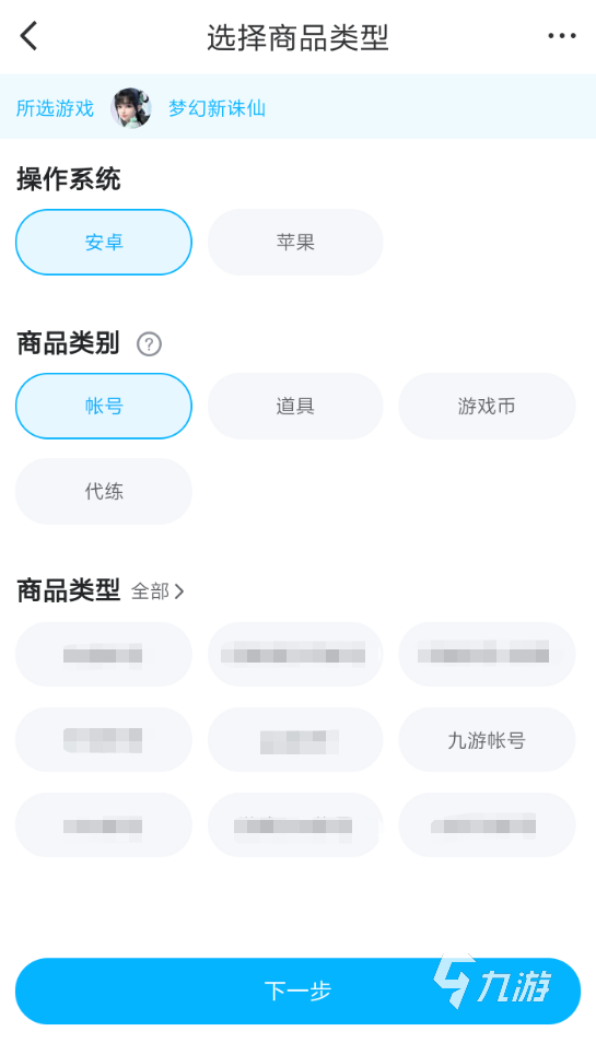 1、當然,各位想要出售自己的九游賬號的話,首先就需要進入到商品的發(fā)布頁面當中,在這里各位需要根據(jù)賬號的真實信息來填寫內(nèi)容,同時大家在選擇商品類型的時候,一定要勾選好九游賬號,這樣其他買家在瀏覽商品的時候就會直接了當?shù)陌l(fā)現(xiàn)。