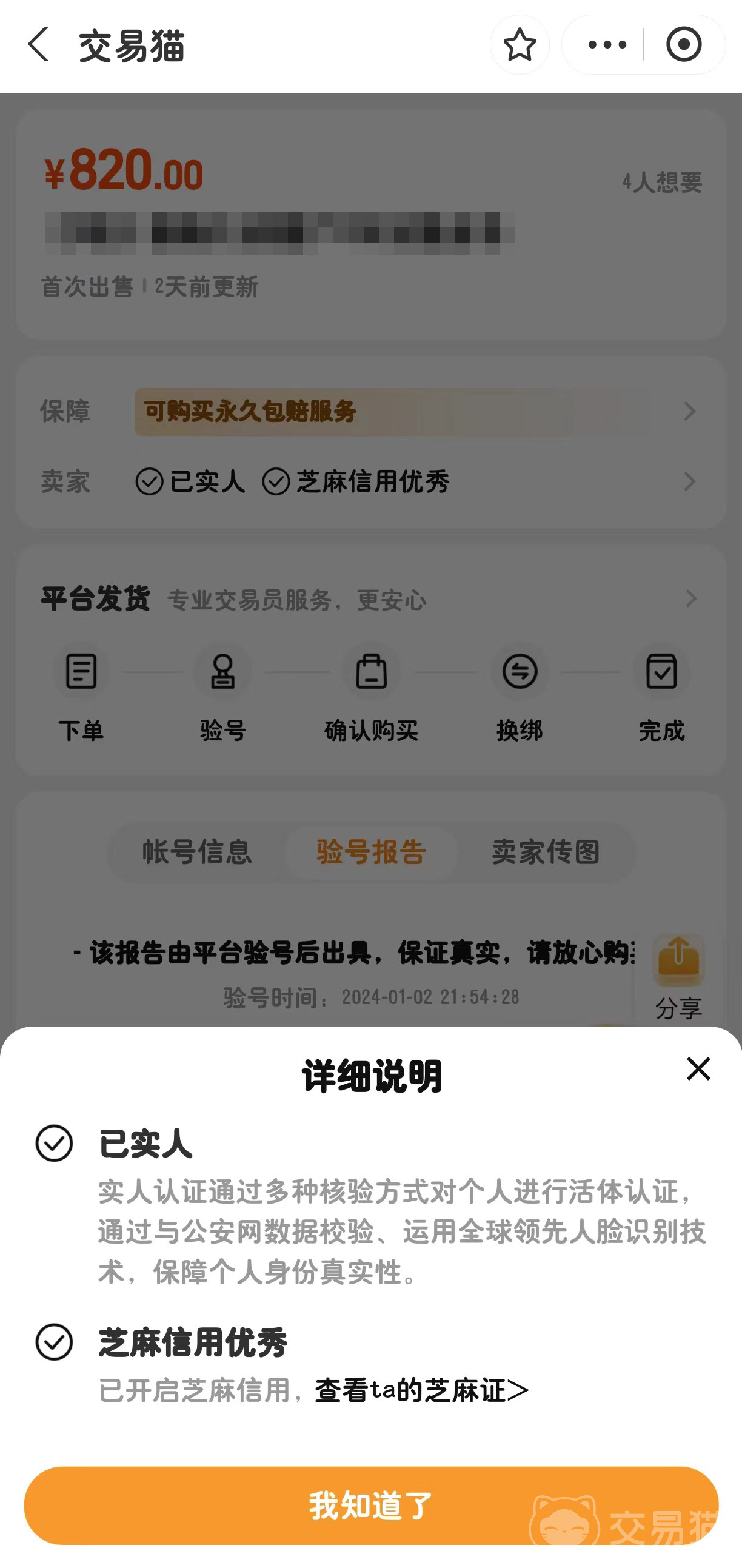 交易安全可靠。交易貓平臺注重用戶的交易安全,采用多種安全保障措施,確保您的交易過程安全無憂。例如平臺會出具驗號報告,進行嚴(yán)格把關(guān),以確保用戶的權(quán)益不受損害,以及賣家實名認(rèn)證和信用報告。