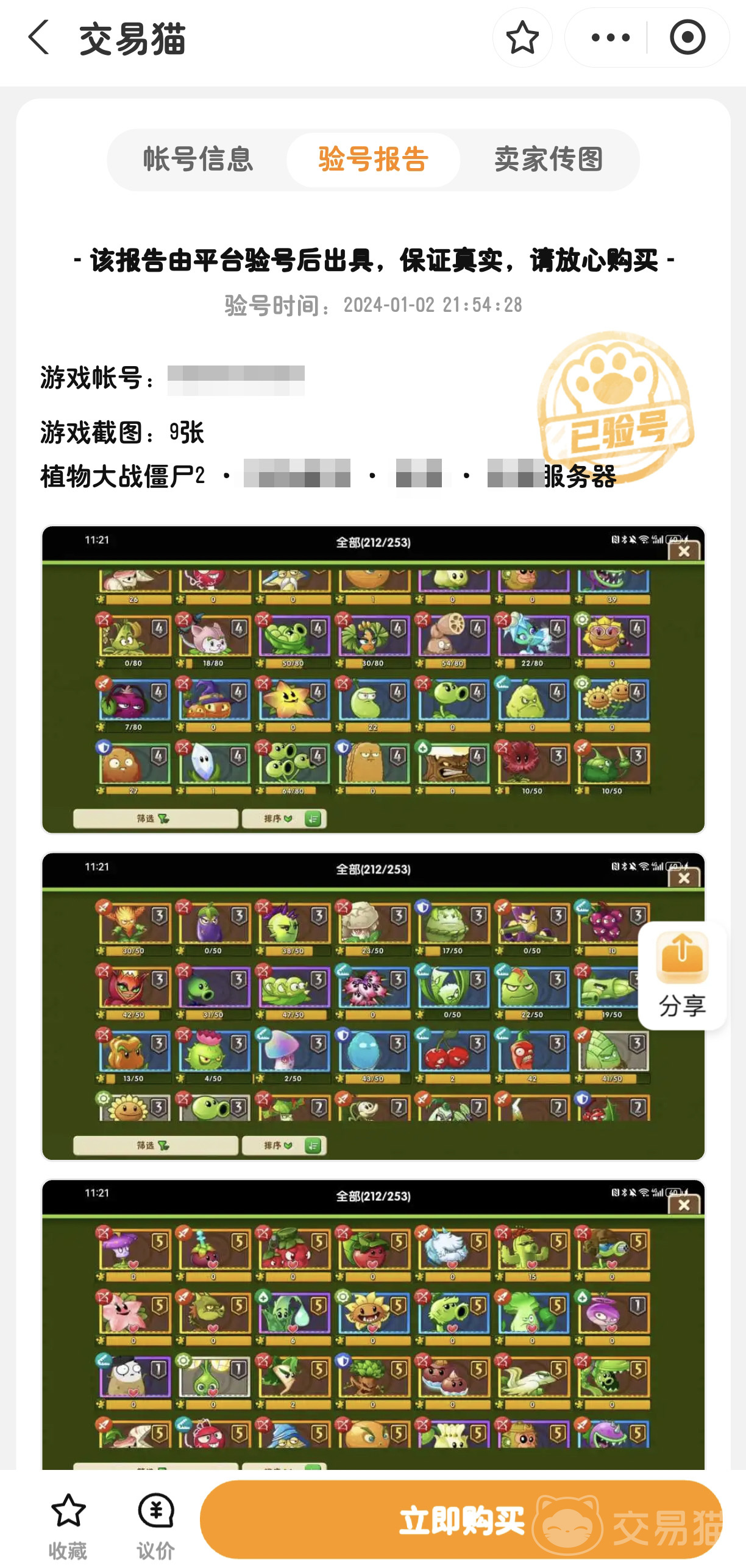 賬號品質(zhì)有保障。交易貓平臺對所有出售的植物大戰(zhàn)僵尸賬號進行嚴(yán)格的審核,確保賬號的等級、道具等信息的真實性和完整性。使得用戶收獲宛如自己在游戲中親自打造的賬號,讓您享受游戲的樂趣。