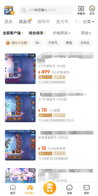 交易貓平臺(tái)匯集了海量的時(shí)空獵人優(yōu)質(zhì)賬號(hào)資源,涵蓋了從初級(jí)到頂級(jí)的各種賬號(hào)選項(xiàng),不論是新手入門賬號(hào),還是頂級(jí)裝備滿配賬號(hào),都可以在這里找到。交易貓?zhí)峁┰敿?xì)的賬號(hào)信息和篩選條件,玩家可以輕松找到適合自己的賬號(hào),無需再耗費(fèi)大量時(shí)間去尋找心儀的賬號(hào)。此外,交易貓的賬號(hào)描述詳細(xì),包括角色等級(jí)、裝備狀態(tài)和已解鎖的技能信息等,讓買家能夠明確地了解到賬號(hào)的實(shí)際狀況。交易貓這一多樣化的賬號(hào)資源,為時(shí)空獵人玩家提供了極大的選擇自由。