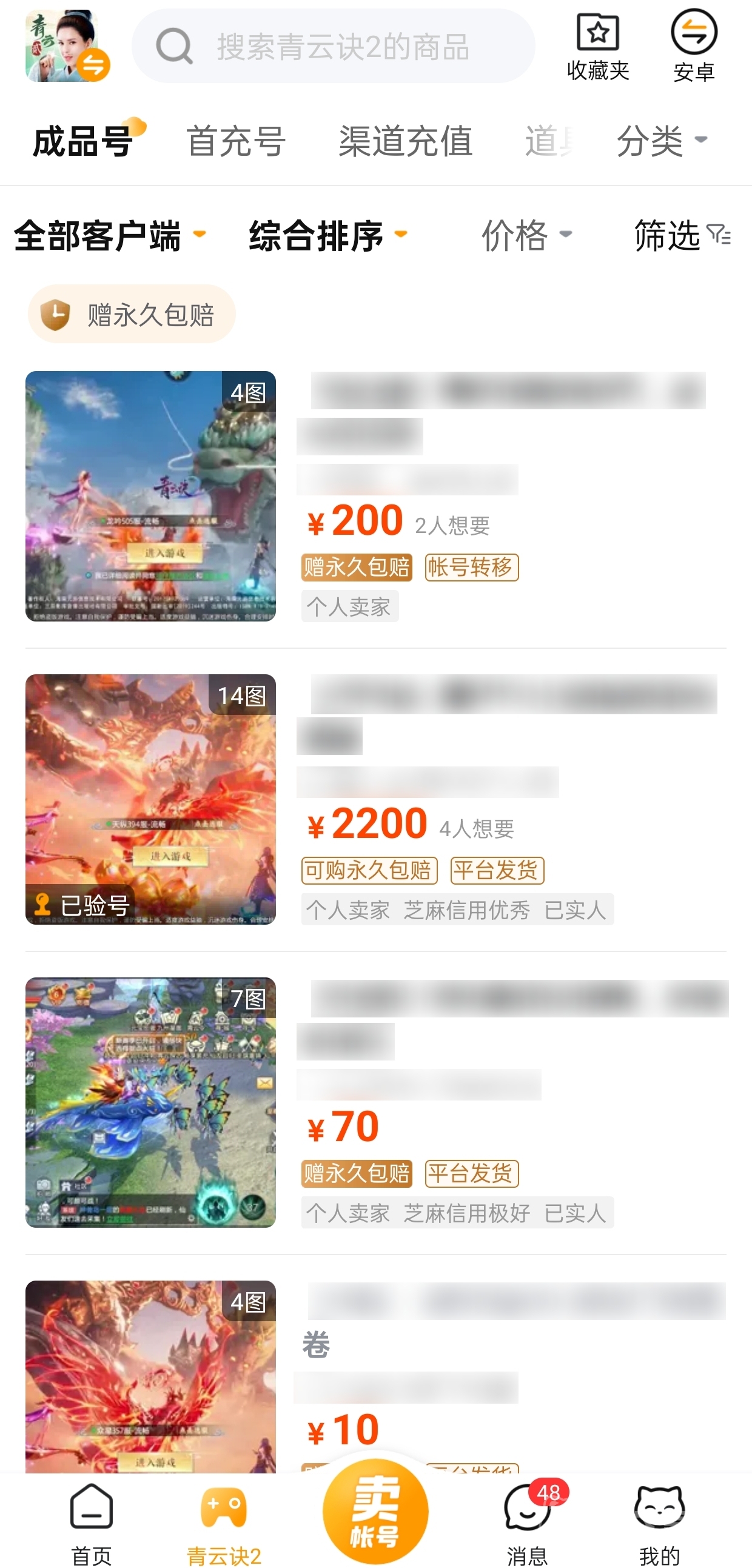 交易貓平臺擁有龐大的折扣號資源庫,涵蓋了《青云決2》中的各種類型和等級的賬號。無論是想要購買高端賬號享受游戲的樂趣,還是想要轉(zhuǎn)讓自己的賬號回籠資金,都能在這里找到滿意的選擇。這些折扣號的價格實惠,性價比極高,是玩家們在游戲中快速提升實力的重要途徑。