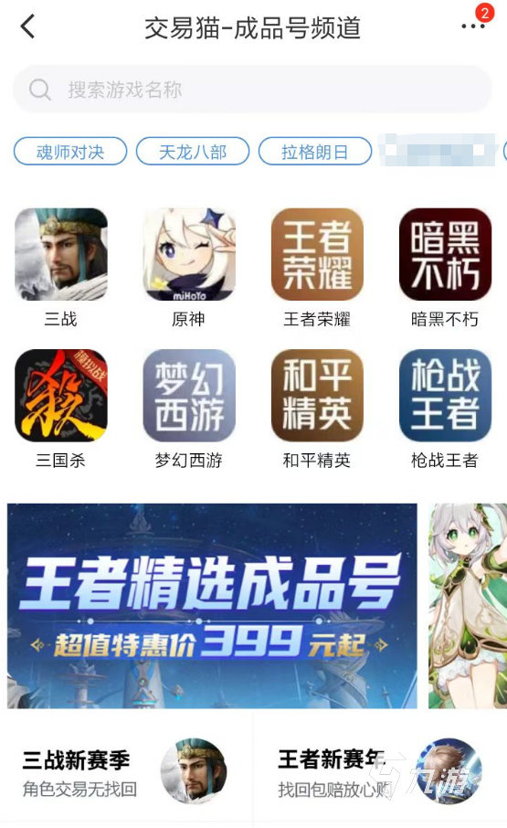2、龐大的成品號(hào)交易頻道,會(huì)讓所有玩家們都能夠找到自己正在玩的相關(guān)游戲。除了劍三緣起的玩家以外,其他手游或者PC游戲的玩家,依然可以通過(guò)交易貓的該頻道來(lái)獲取自己想要的賬號(hào)。同時(shí),當(dāng)前的熱門(mén)交易游戲會(huì)直接呈現(xiàn)在頻道的最上方讓大家查看。