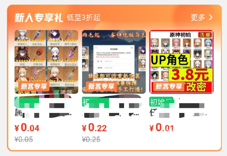 如果你第一次使用交易貓的新用戶,還有特別實(shí)惠的新人專享區(qū),能以極低的價(jià)格購入你心儀的原神賬號,低至3折起哦!大家可以先去看看角色強(qiáng)度榜,然后在專區(qū)內(nèi)搜索有相應(yīng)角色的初始號就完事了。
