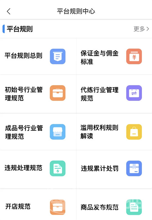 關(guān)于平臺的交易規(guī)則方面,交易貓也有為大家做出詳細的介紹,這足以看出它是一個專業(yè)的賬號買賣app,其中針對保證金、傭金等的標準都有詳細說明,為了避免大家出現(xiàn)誤操作的情況,平臺對代練、成品號和初始號等各個分區(qū)也都有詳細的管理規(guī)范,屆時,只需去點擊相應(yīng)區(qū)域即可了解到相關(guān)信息。