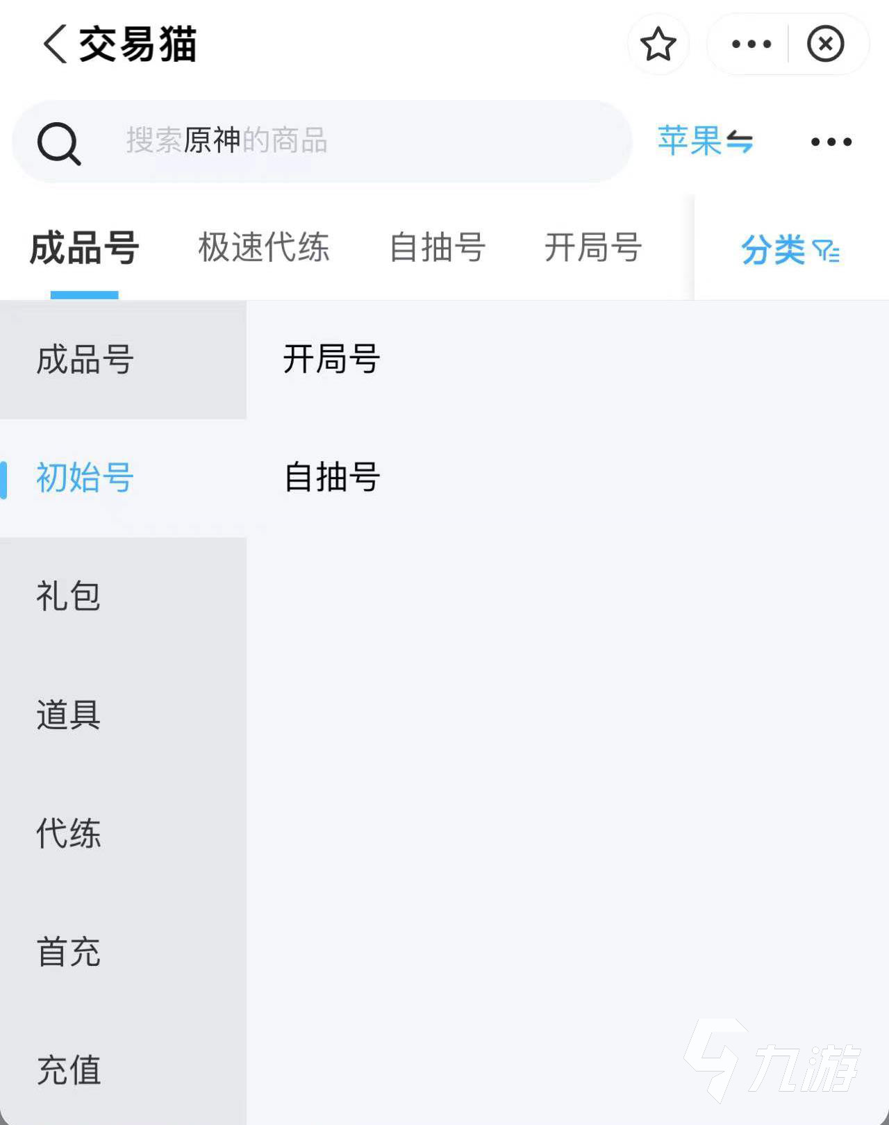 有的朋友玩游戲的時候,側(cè)重的方向不一樣。有的人注重裝備、金幣的積攢,有的人則更注重等級的提升。所以就衍生出了資源號、成品號等商品,有的人則小號比較多,也就是所謂的初始號。在交易貓上不同類型的賬號都可以兜售。