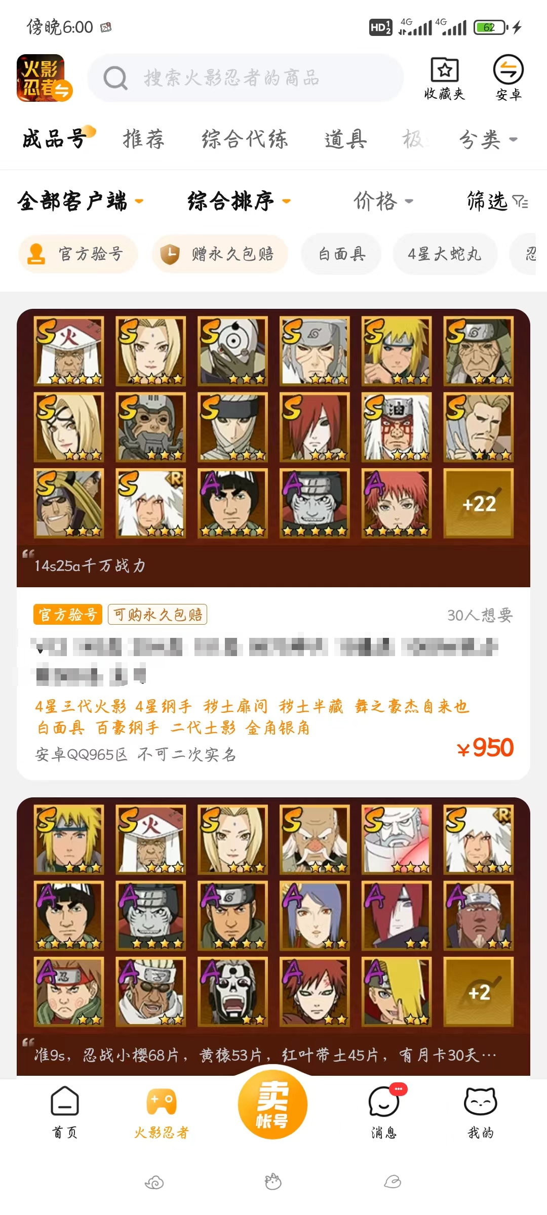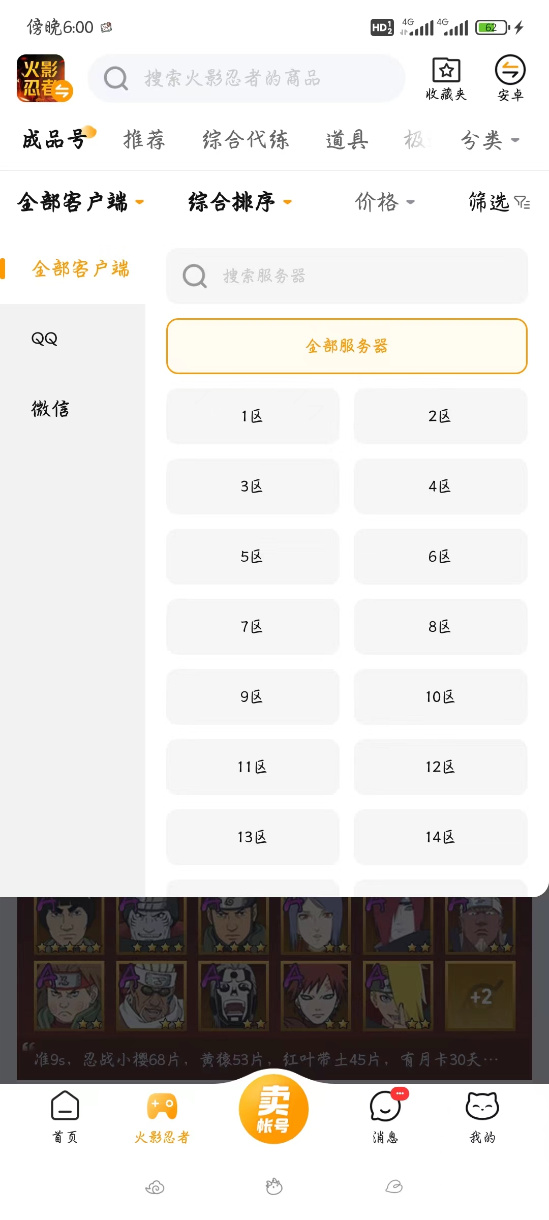 直接點(diǎn)擊上方輸入火影就能看到相關(guān)的游戲?qū)^(qū),在這里有很多的賬號提供給大家使用,大家可以根據(jù)自己想要登錄的設(shè)備去找適合的賬號進(jìn)行購買,甚至可以精確到哪個區(qū)的,如果大家有朋友正在玩這個游戲的話,不妨嘗試一下跟他買到同一個區(qū)。