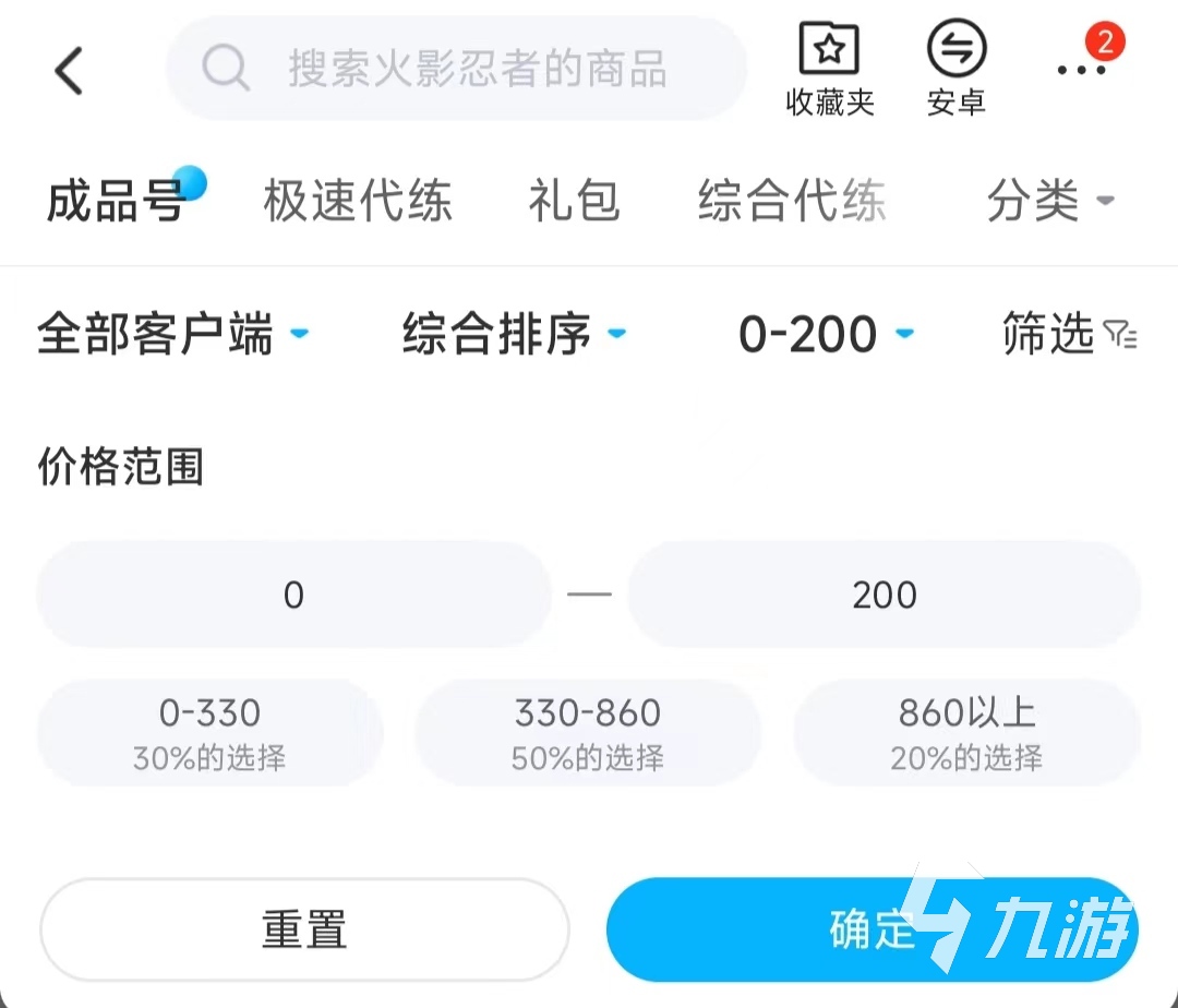 交易貓平臺(tái)內(nèi)設(shè)有火影忍者的交易專區(qū),專區(qū)中有很多按鈕用于篩選自己所需的賬號(hào)訂單。玩家只需要在價(jià)格標(biāo)簽中填寫想要搜索賬號(hào)的價(jià)格范圍(例如0-200),就可以快速定位出這個(gè)價(jià)格區(qū)間的所有在售賬號(hào)。相應(yīng)的,在這個(gè)價(jià)格區(qū)間基礎(chǔ)上玩家還可以通過頁(yè)面的按鈕進(jìn)行更精準(zhǔn)的篩選,這樣就可以在預(yù)算范圍內(nèi)找到最適合自己的賬號(hào)。