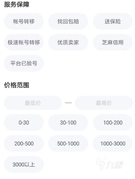 2、當(dāng)然,大家在專區(qū)內(nèi)挑選商品的時(shí)候,肯定會(huì)發(fā)現(xiàn)大量自己不太感興趣的交易內(nèi)容。那么這個(gè)時(shí)候小編就建議大家使用篩選功能,通過調(diào)整價(jià)格區(qū)間以及商品所支持的服務(wù)保障,這樣就可以方便玩家瀏覽更多符合條件的商品。
