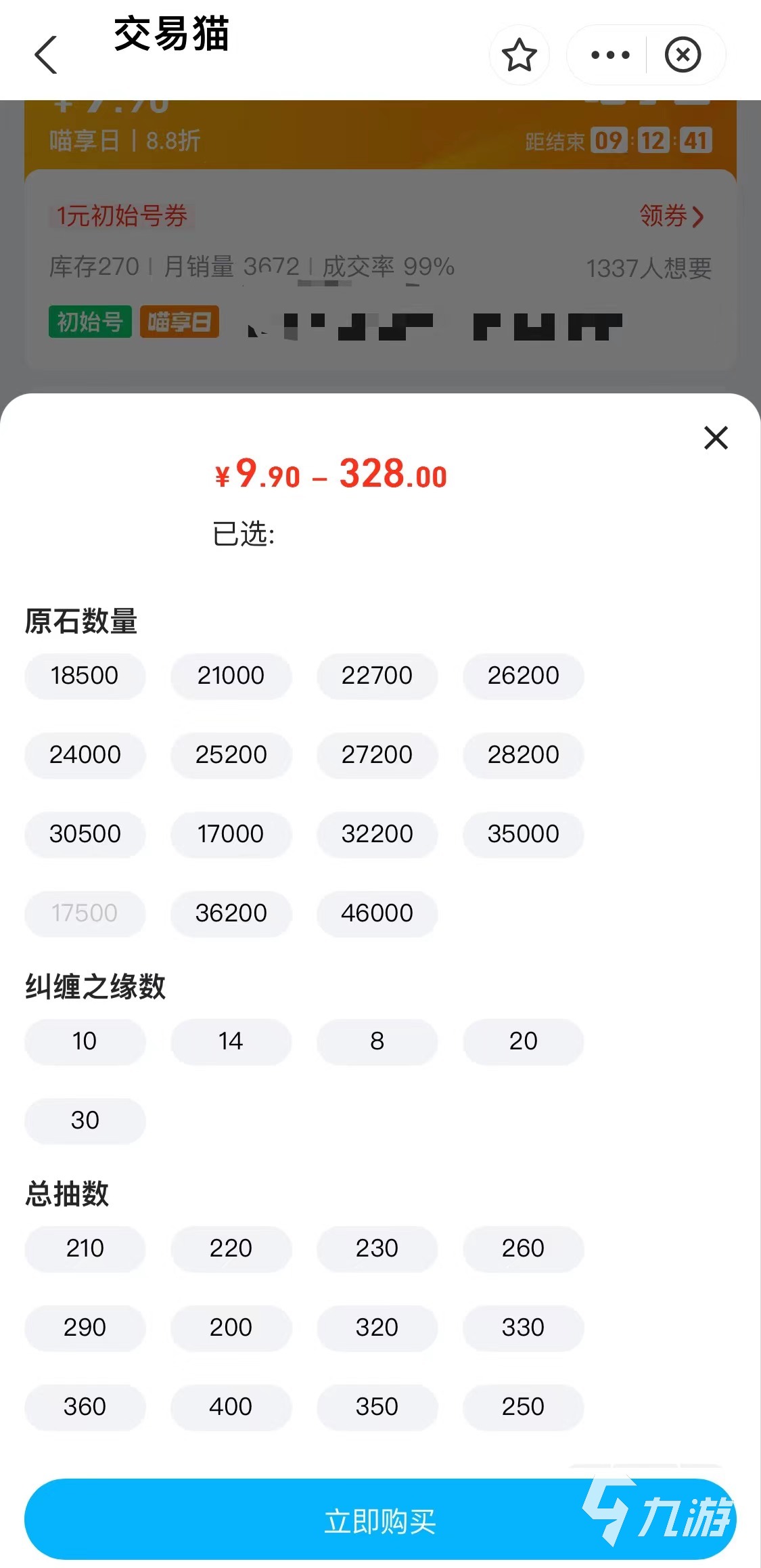 3、可選性強(qiáng)。每個(gè)交易產(chǎn)品里都會(huì)列明交易中可選抽取次數(shù),原石數(shù)量和糾纏之緣數(shù)量。想要狠狠抽一把的玩家可以選擇抽取次數(shù)多的產(chǎn)品。當(dāng)然,抽取數(shù)量上漲價(jià)格也會(huì)有漲幅。不過(guò)玩家們可以貨比三家,多比比總能找到心儀的賣(mài)家。