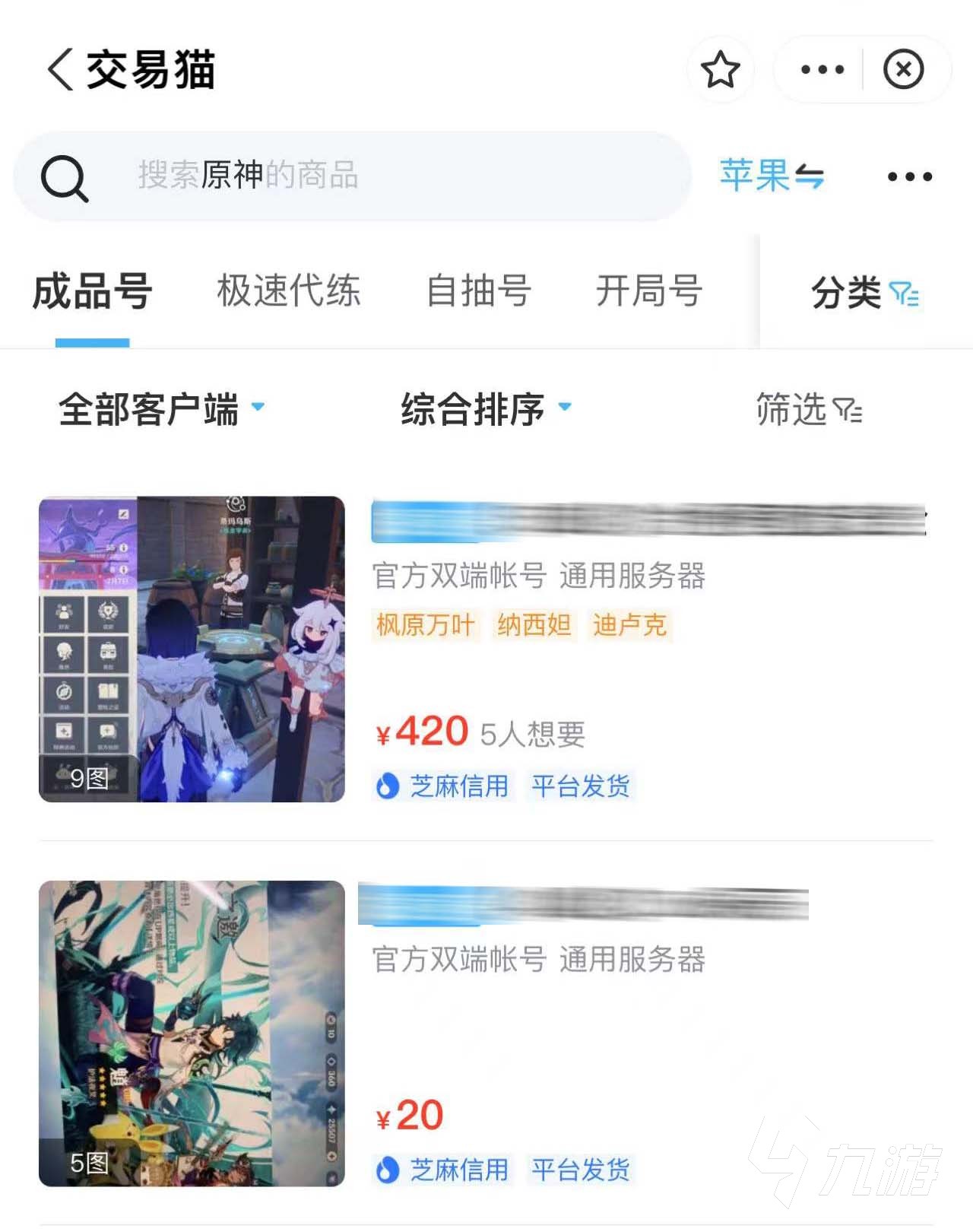 交易貓是個(gè)體量很大的游戲賬號(hào)交易門戶,再加上原神這款游戲?qū)嵲谔珶衢T了。所以在該平臺(tái)上的商品數(shù)量非常多,一般擁有神里綾華的初始號(hào)價(jià)格在一百多~三千多這個(gè)區(qū)間,如果擁有的角色少則價(jià)格低,擁有角色多價(jià)更高一些。