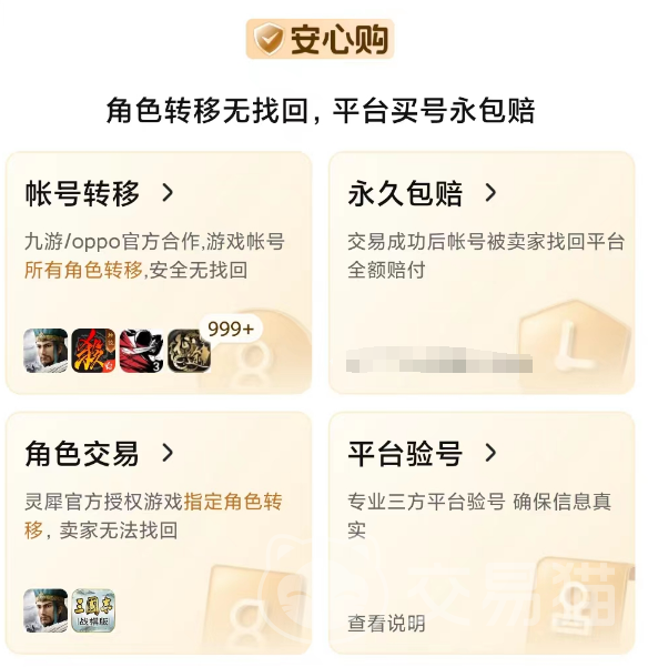 其次就是交易貓展現(xiàn)給各位用戶的一個態(tài)度,愿意自掏腰包去為賬號上保險。雖然說目前交易貓的能力沒有辦法幫助所有的商品提供保險服務(wù),但也是大面積的向很多高質(zhì)量賬號提供了安心購保險,在這項保險當(dāng)中沒有任何的文字游戲,而是實打?qū)嵉?,能夠讓買家足夠放心。因為很多賬號就算被找回了,也是能夠為買家提供包賠服務(wù)的。