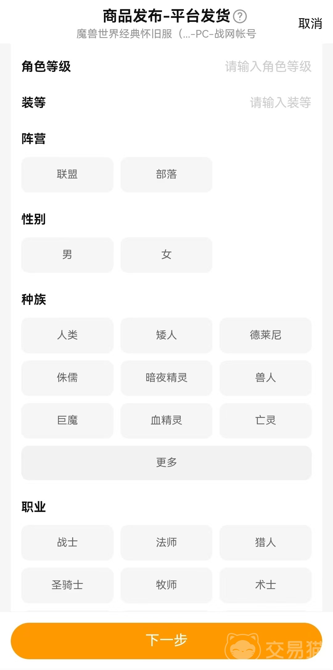 當(dāng)用戶選擇賣賬號(hào)的時(shí)候,選中好游戲和商品,就可以看到平臺(tái)發(fā)貨的保障措施,平臺(tái)發(fā)貨指的是專業(yè)交易員來(lái)協(xié)助進(jìn)行發(fā)貨,使交易過(guò)程更加快捷和安全,而且是24小時(shí)提供服務(wù)。上架時(shí)候只需要自行動(dòng)手上傳截圖,然后根據(jù)模板填寫相應(yīng)要求就可以了。包括角色等級(jí)、裝等、所處陣營(yíng)、種族和職業(yè),然后再填寫是否擁有稀有坐騎、武器以及專業(yè)等,這樣就可以上架成功,不需要自己再動(dòng)手填寫很多內(nèi)容,點(diǎn)擊選擇就是。買家在購(gòu)買時(shí)候也可以看到這些情況,通過(guò)篩選能夠及時(shí)選擇出來(lái),這樣對(duì)雙方來(lái)說(shuō)都節(jié)省了工作量。