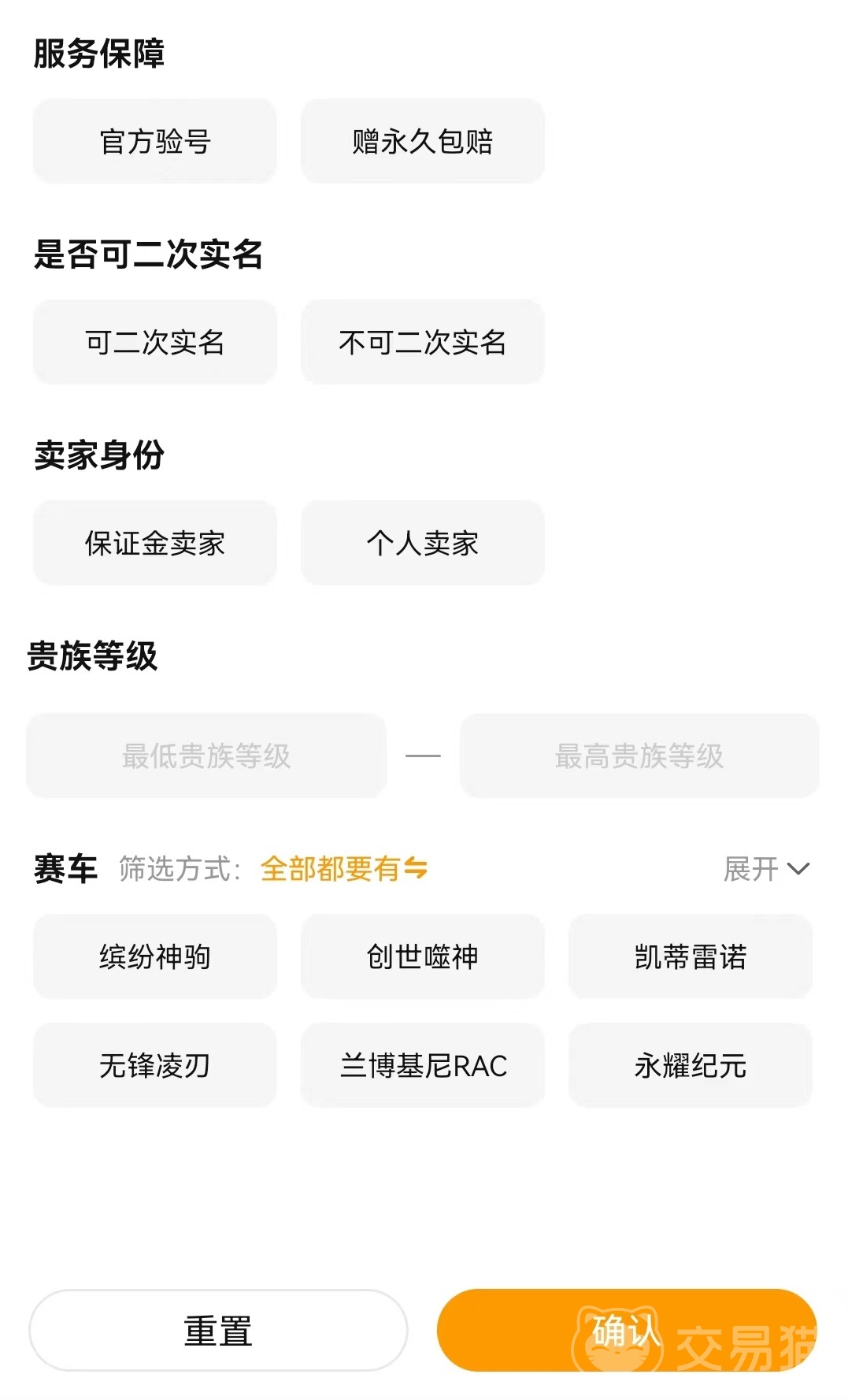 因為平臺口碑好,人氣旺盛,所以有很多玩家在這里出售自己所用的帳號,這就導(dǎo)致了在專區(qū)中擁有數(shù)量極多的商品,這對于買家來說能夠有更多挑選空間,可以在其中找到符合要求且性價比高的內(nèi)容。而且不用擔(dān)心數(shù)量太多,無法全部查找的問題,在篩選中可以直接通過賬號中所擁有哪些賽車,以及當(dāng)前貴族等級等內(nèi)容,將符合要求的直接找出來,這樣就不會錯過那些性價比高的商品了。