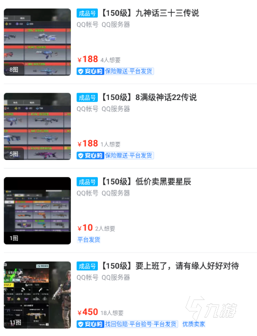 (二)多數(shù)賬號配備安心購服務(wù),買號更安全。