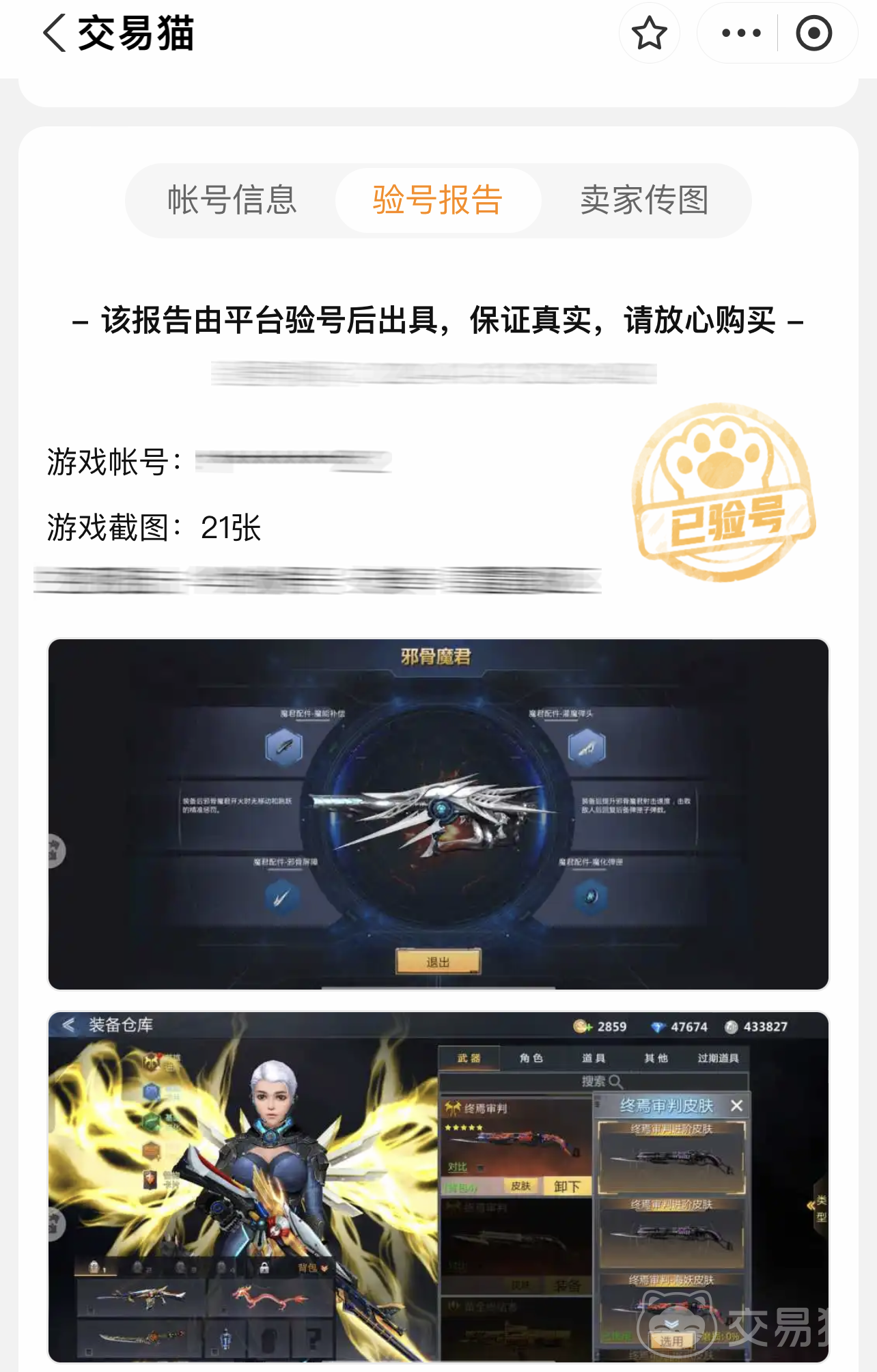 對于價值頗高的賬號,有些買家們會擔(dān)心對不上信息。這時部分商品帶有平臺驗貨,玩家們就可以細細地查看這份驗號報告,就能了解信息是否屬實,然后賬號內(nèi)有哪些東西也有一目了然的陳列在你眼前,接著購買后只需在游戲內(nèi)驗證一下即可上線游戲暢玩了。