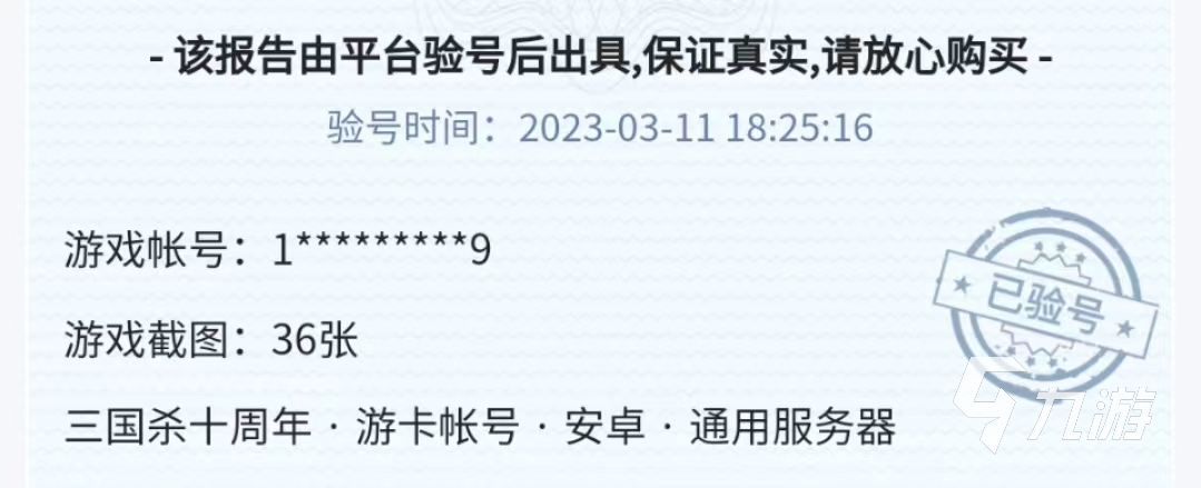 看完本期介紹,大家都知道三國殺十周年賬號價格在哪里看了吧,來交易貓就可以查看不同類型賬號的價格表了,不管是便宜的還是貴的賬號里面都有,看上的話大家可以放心下單,有驗號報告作為保證,買到的絕對是真實靠譜的賬號。