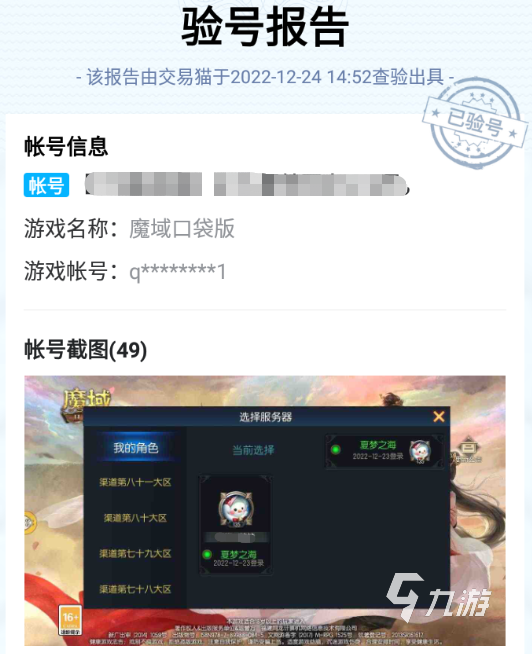 找到自己想要的商品之后,我們還會考慮到安全性的問題,平臺也提供了安心購和優(yōu)質賣家的標識來讓買家們來進行鑒別,最好的鑒別方式還是“平臺驗號”了,驗號報告當中也還會給大家展示更為詳細的截圖,里頭中也包含了幻獸和背包,以及人物詳情等等。如果是擔心找回的話,那倒是可以找個有“找回包賠”的服務,有的賣家還會附贈保險,我們只需要通過“篩選”當中就可以篩選出來。