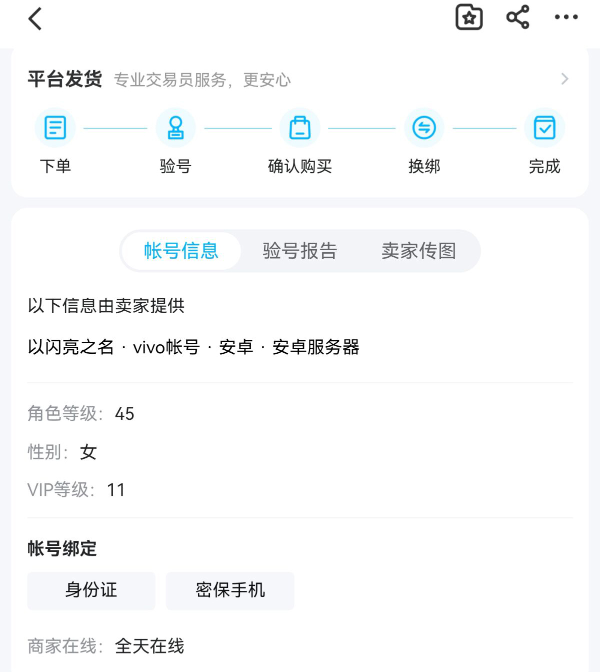 由于游戲里面的道具很多,每一件道具都可以決定一個賬號的價值,有些朋友就很喜歡一些限時裝扮道具。這時候就可以通過商家們編輯的信息查看里面有沒有你想要的東西,另外還有其他服裝或者VIP等級等信息。都是可以幫助大家判斷這個賬號到底有沒有價值,這樣才能放心購買,還可以讓你成功撿漏。