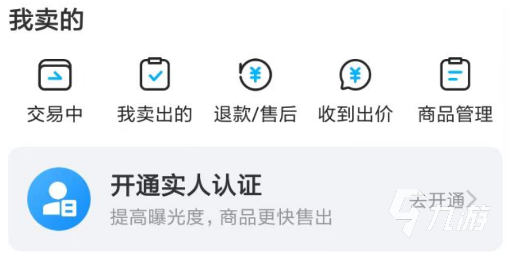 3、當(dāng)各位擁有了發(fā)布的商品后,就可以好好的利用賣(mài)家管理系統(tǒng)來(lái)隨時(shí)觀察自己的商品狀態(tài),在這里玩家們將了解到每一個(gè)商品當(dāng)前的交易階段,同時(shí)也可以在下方開(kāi)通實(shí)人認(rèn)證,來(lái)讓玩家發(fā)布的賬號(hào)商品獲得更不錯(cuò)的流量曝光。