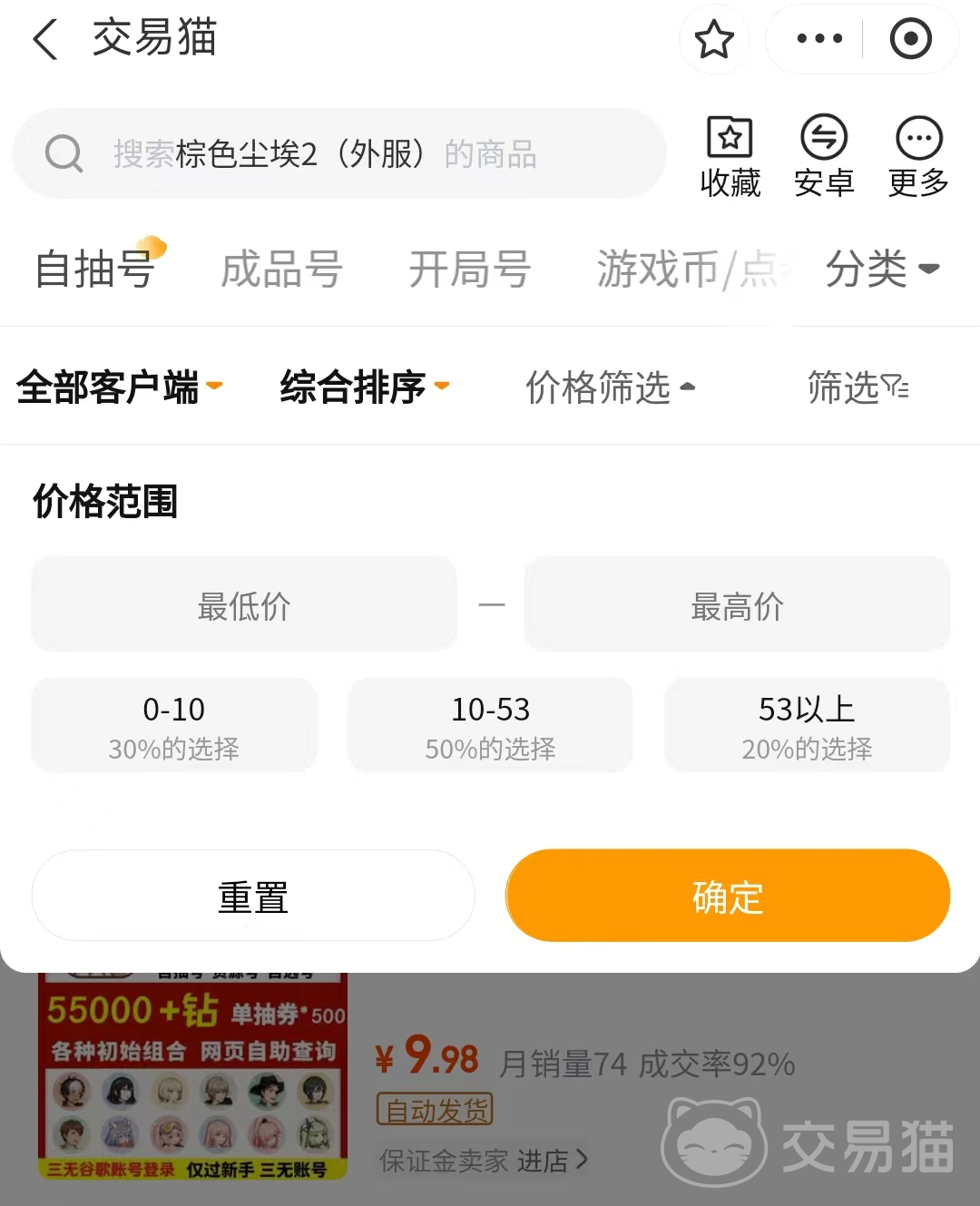 如果玩家在購買賬號(hào)的時(shí)候覺得這個(gè)賬號(hào)的價(jià)格設(shè)置得過高,并且自己很想要的情況下,就可以點(diǎn)開界面內(nèi)的下方有個(gè)議價(jià)功能,在功能的支持下就可以和買方協(xié)商價(jià)格,如果溝通成功的話就可以根據(jù)預(yù)期需求進(jìn)行購買了,為了方便玩家們選擇符合自己需求的價(jià)格賬號(hào),這時(shí)候使用篩選功能設(shè)置價(jià)格區(qū)間,便能快速找到自己需要的賬號(hào)。
